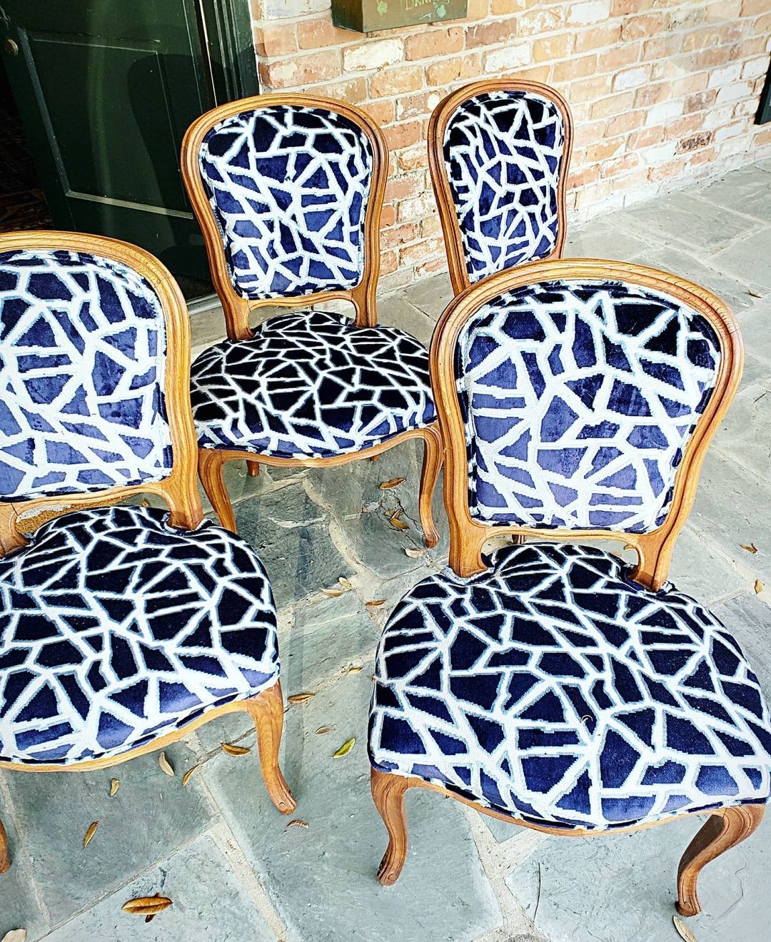 “I love using older pieces in a new way,” says Griffin, who has refurbished many items over the years. “I love adding a more modern fabric to antique chairs; it gives them a new fresh feel and makes them into one-of-a-kind items.”