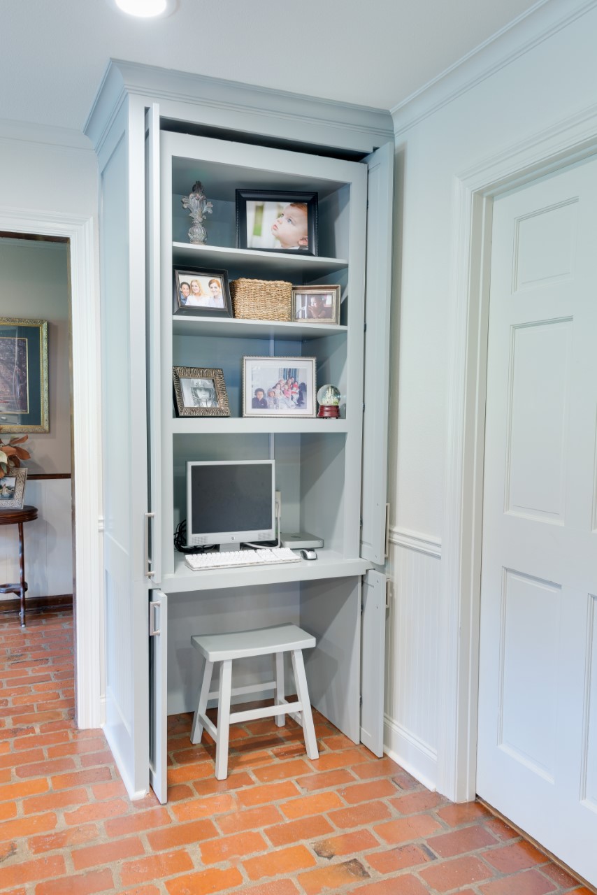 No room to spare in the kitchen for a workplace? Don’t sweat it—there are plenty of other options.