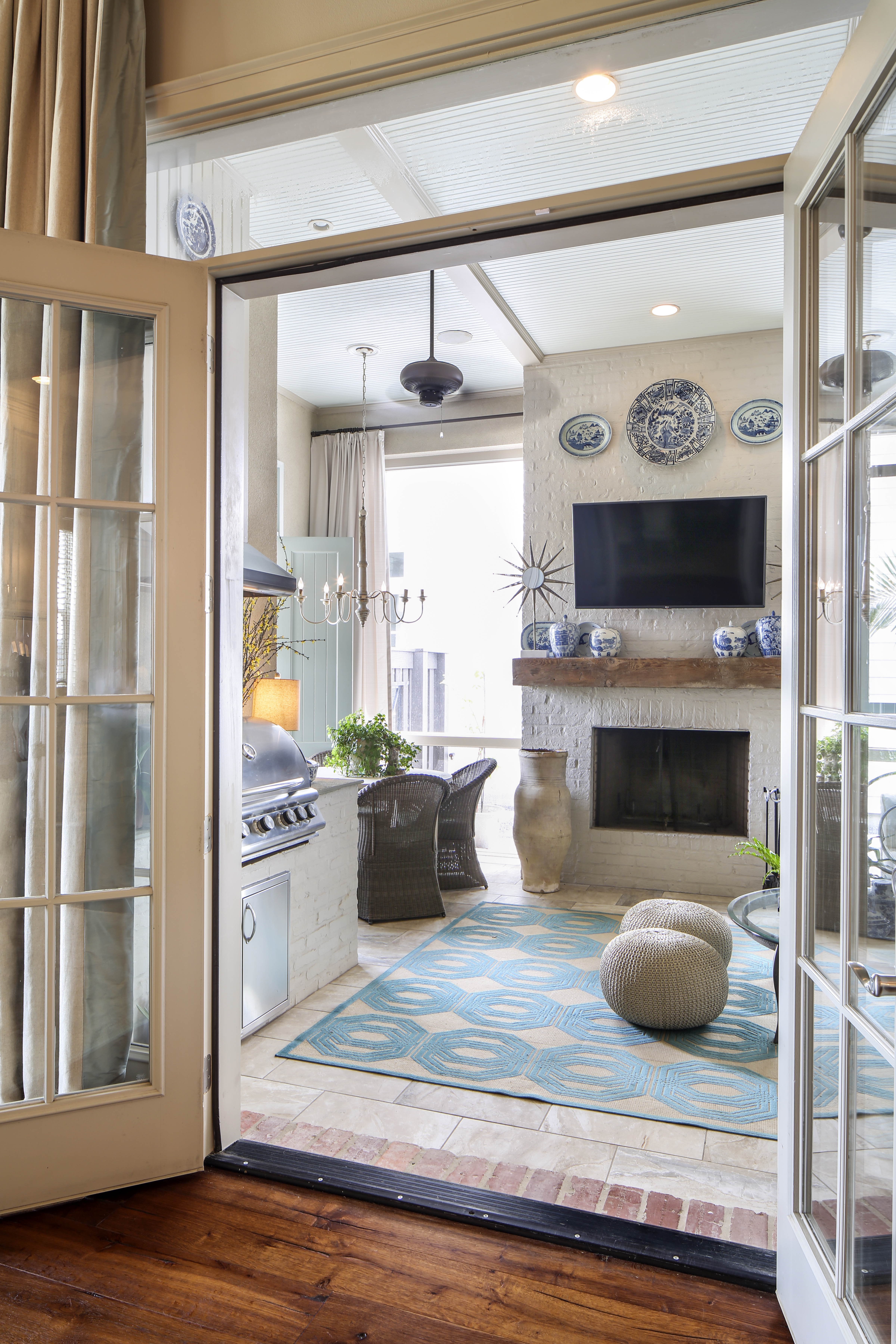 Eventually, Nolan decided that a modified version of Watson’s plan would be perfect for his own next act. Little touches served to make the house his own, like framing the pantry with antique doors from The Corbel in Zachary and adding kitchen cabinets that rise all the way to the 12-foot ceiling. He also made the side patio a more integrated—and more comfortable—part of the living space by surrounding it with screen walls and adding a fireplace.