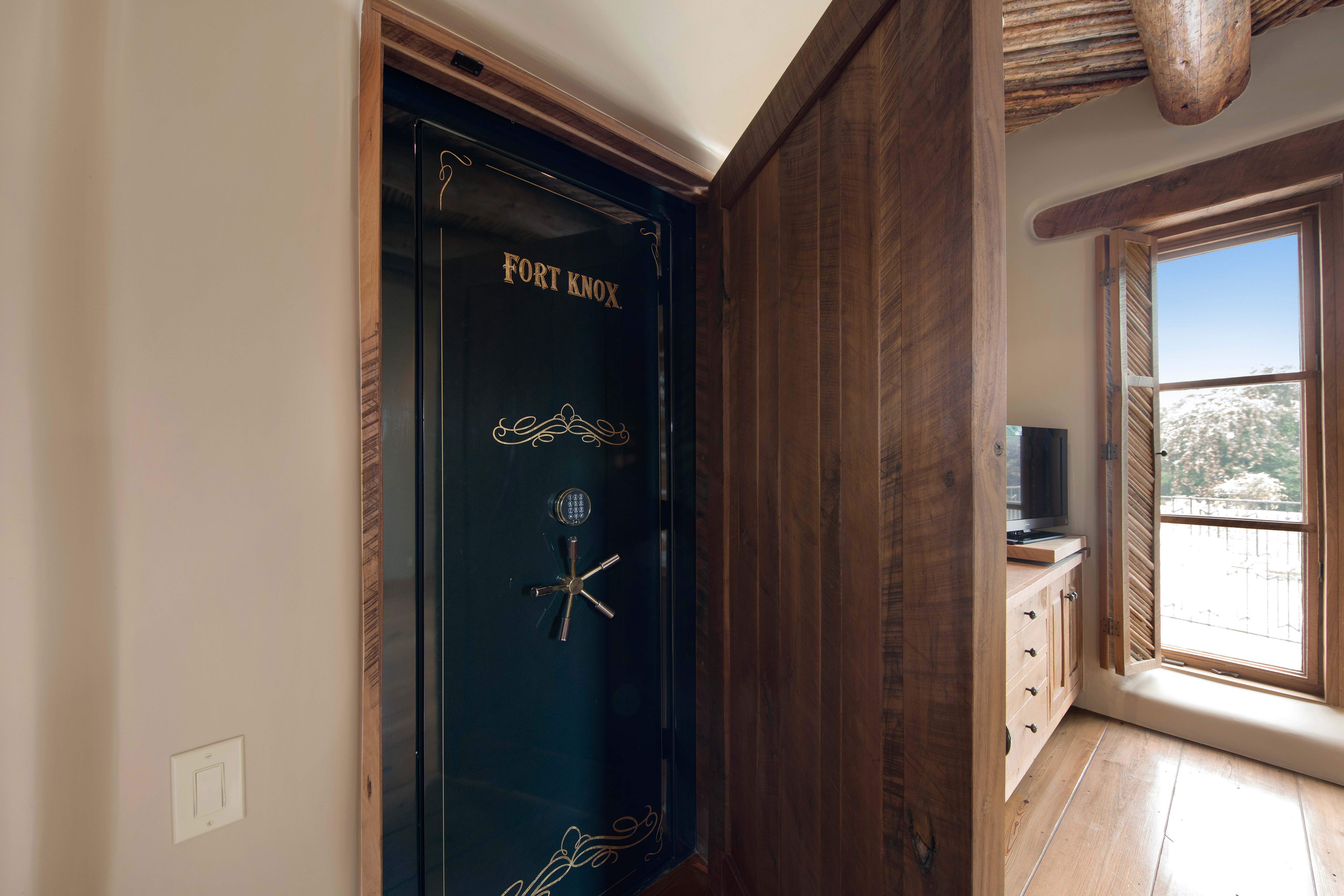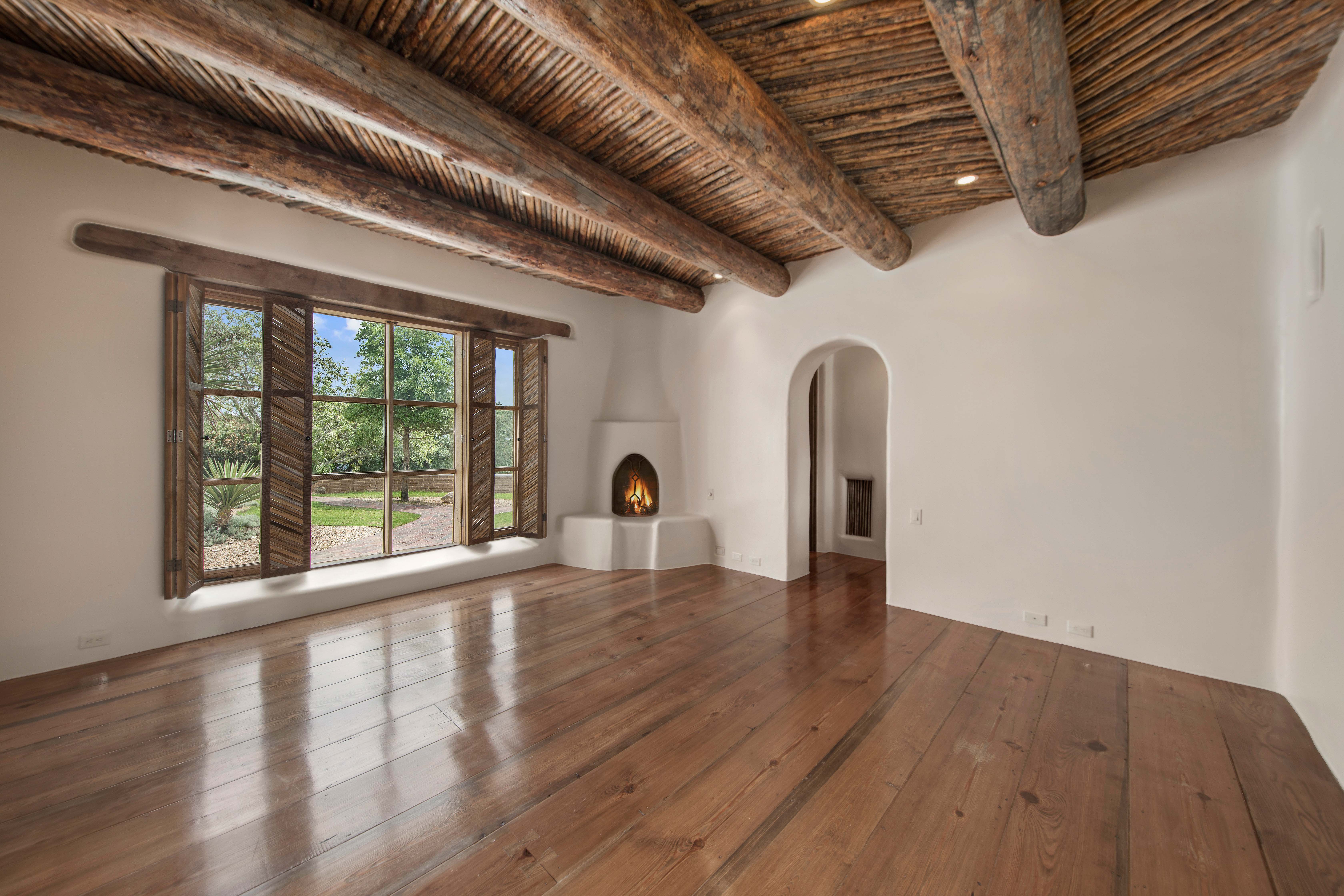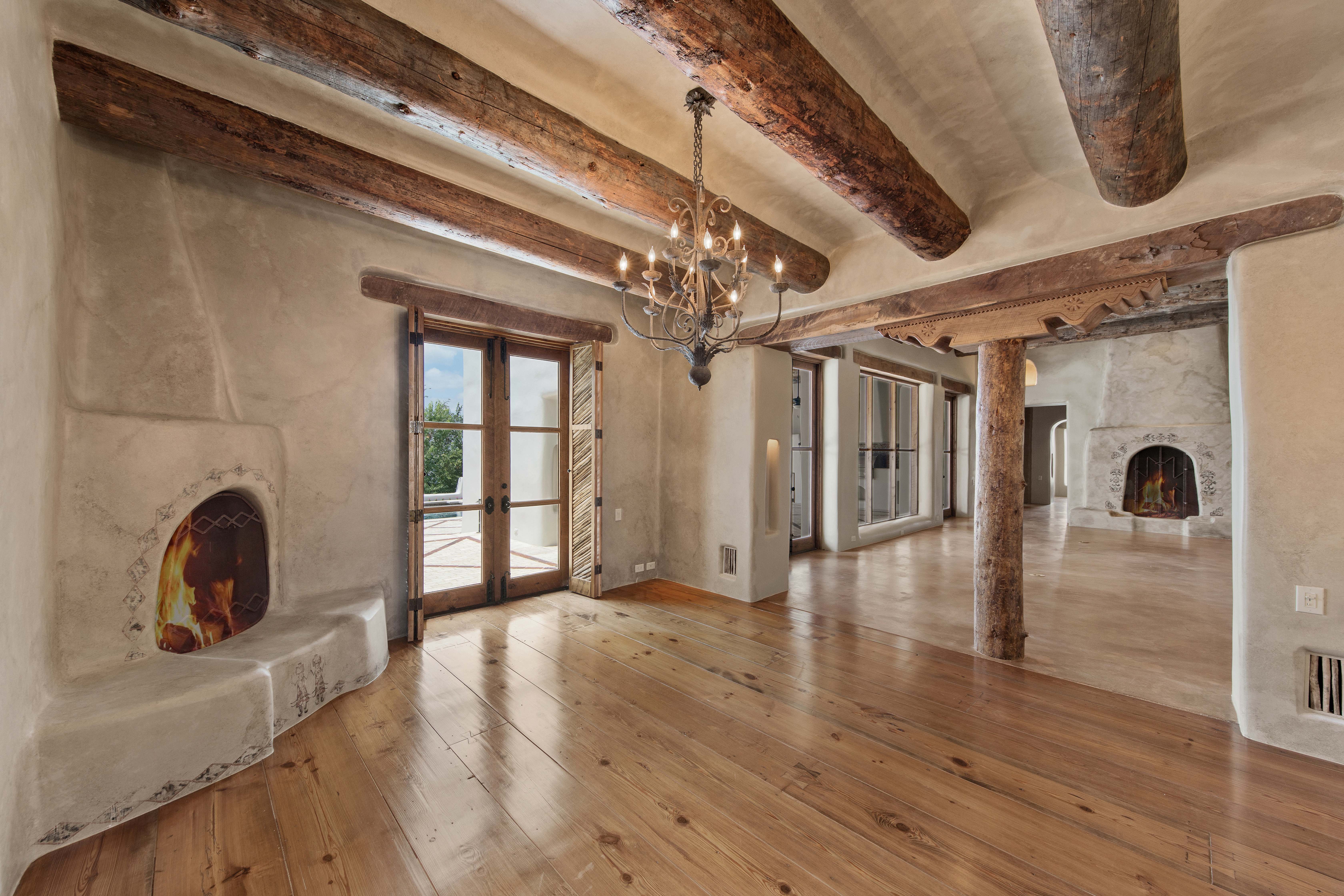 A home whose elements blend seamlessly into the property, structures like the 14 hand-sculpted fireplaces act almost as sculptural elements as well as functional heating systems. A theme of warmth and nature reverberates throughout the home, found especially in places like the kitchen, dining venues, paved terraces and even the gym, with a steamy sauna to accompany it. The master suite includes separate his-and-hers bathrooms and closets, and even two separate fireplaces.