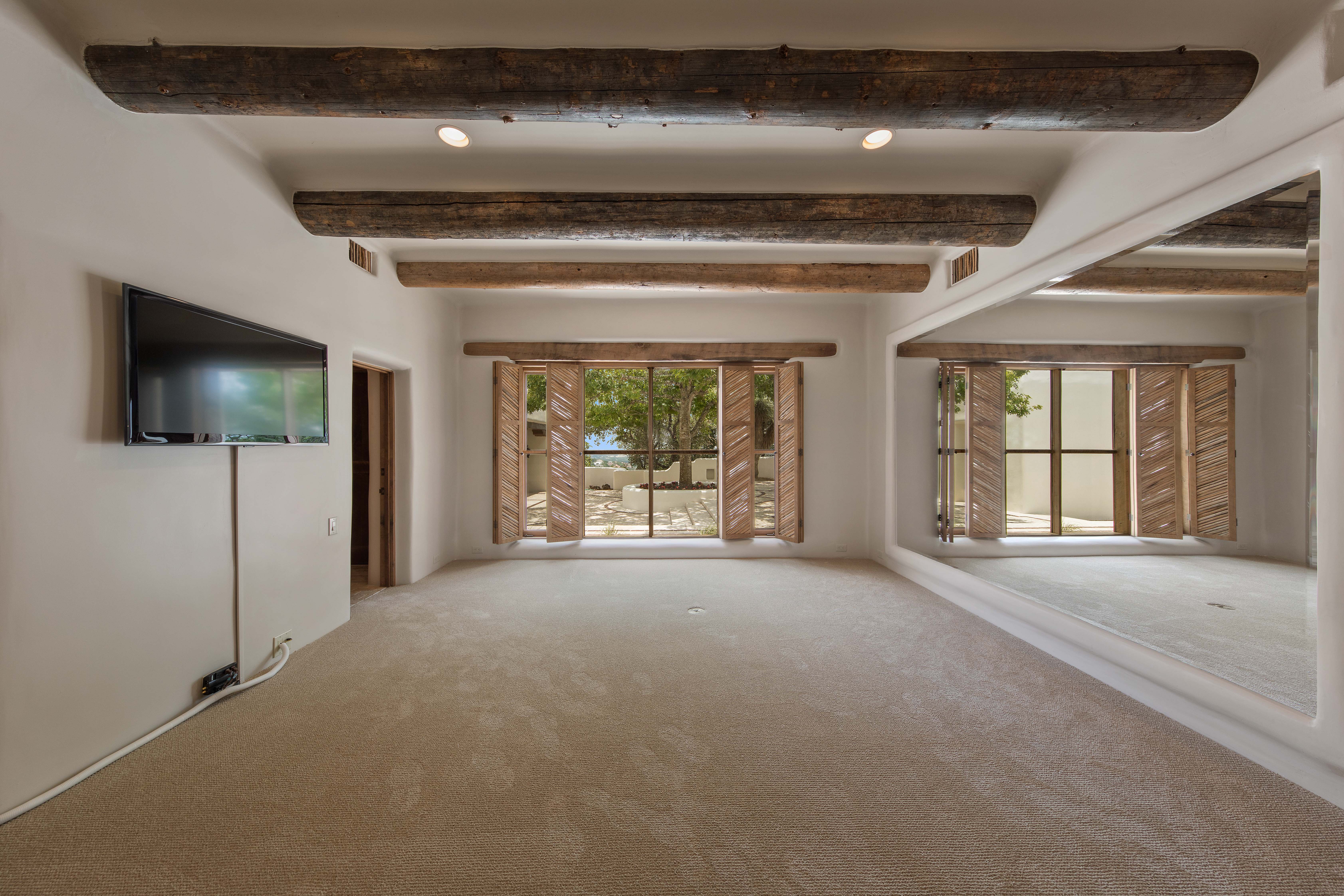 • Using your ceiling in such a bold way can be a great way to add texture and personality to your space. To go as bold as George Strait did, I would make sure the room has ample natural light and tall ceilings. Opting out of using traditional moldings around doors and windows was a bold and appropriate move.