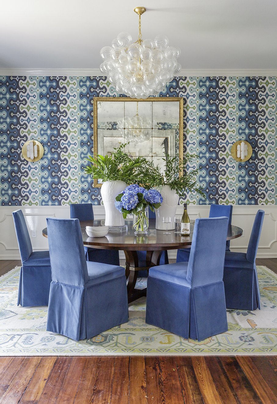 Take, for example, the Westons’ bright and bold dining room, which was part of the latest phase of renovations that kicked off in 2019. The ’60s-inspired wallpaper pattern was definitely a risk. But with a big risk comes a big reward. “To me, that’s what helps a space transcend trends—when you just go for it and do the thing that feels risky but in the end brings you the most joy,” Cannon says.