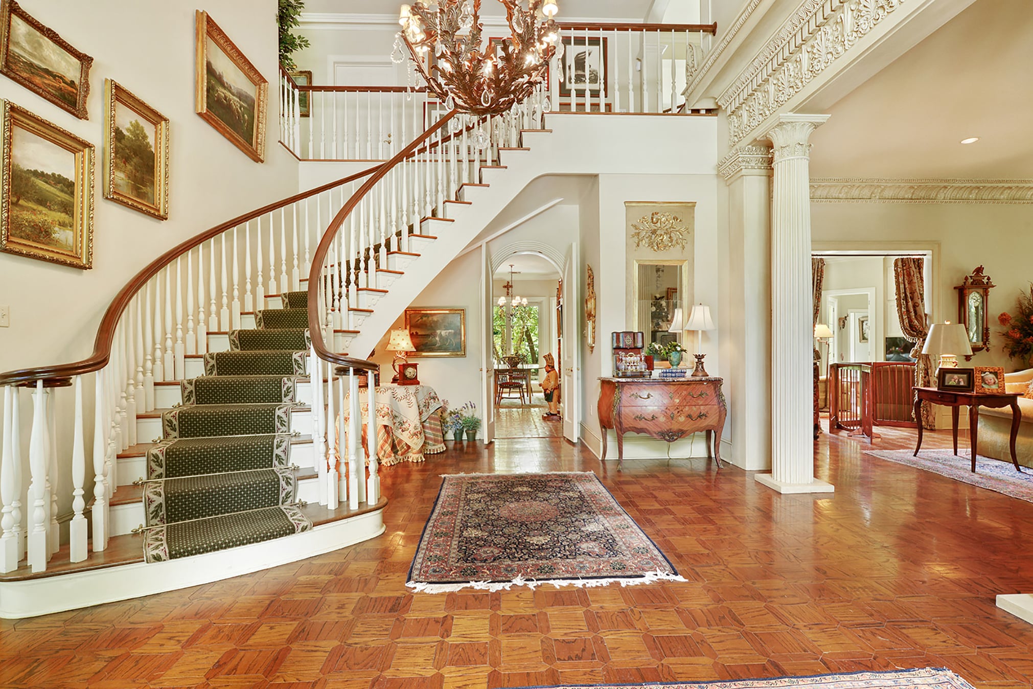 Within the Walls: This home features beautiful craftsmanship, spacious rooms and a grand winding staircase at its entrance. Teak floors reclaimed from a New Orleans warehouse are incorporated throughout, and large windows provide significant views of University Lake.