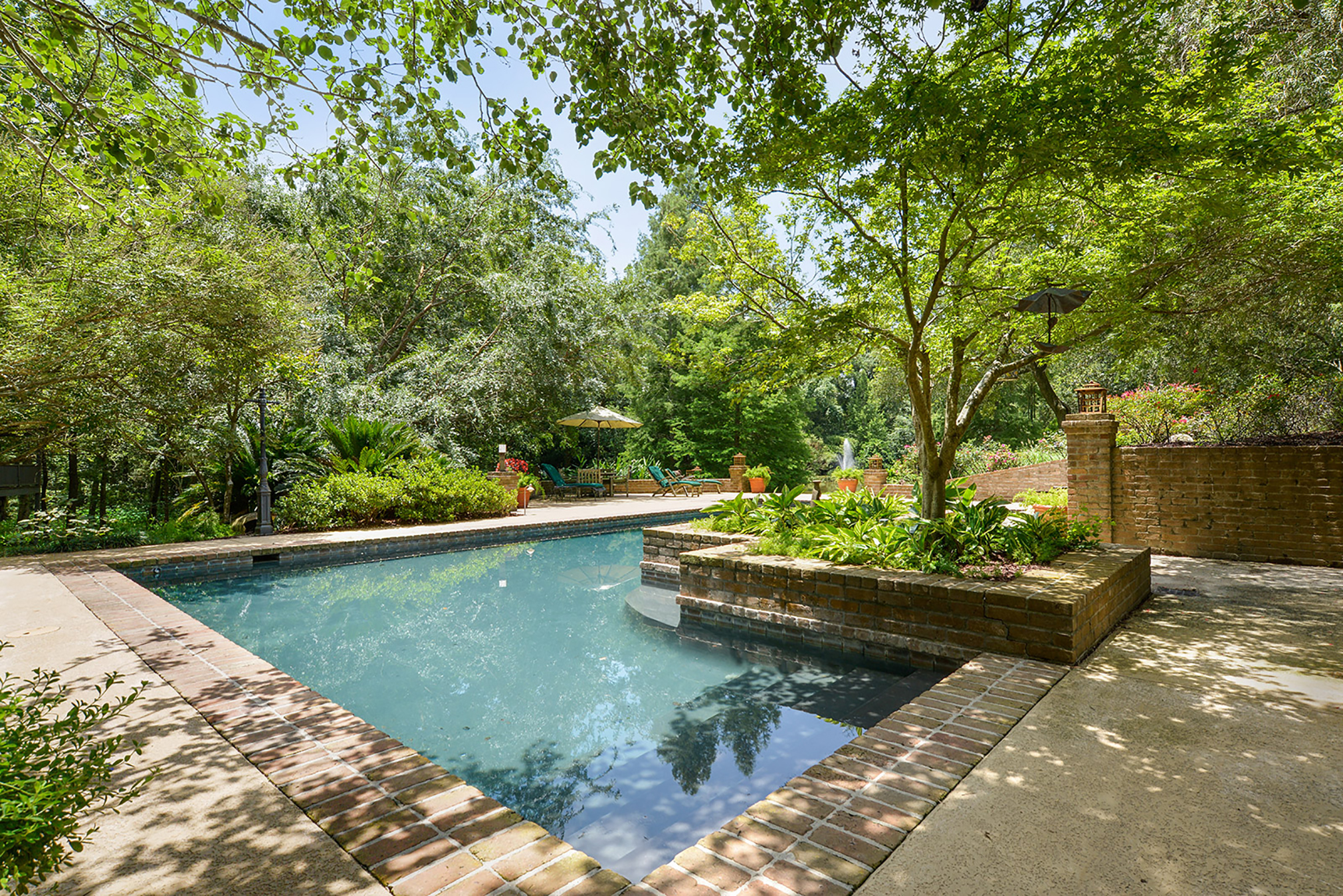 Within the Walls: This French-style estate in The Myrtles of Highland includes seven large bedrooms, each with its own bathroom. The master suite overlooks the backyard and private pond. An extra suite upstairs complete with a kitchenette and private bath is ideal for a nanny or family members.