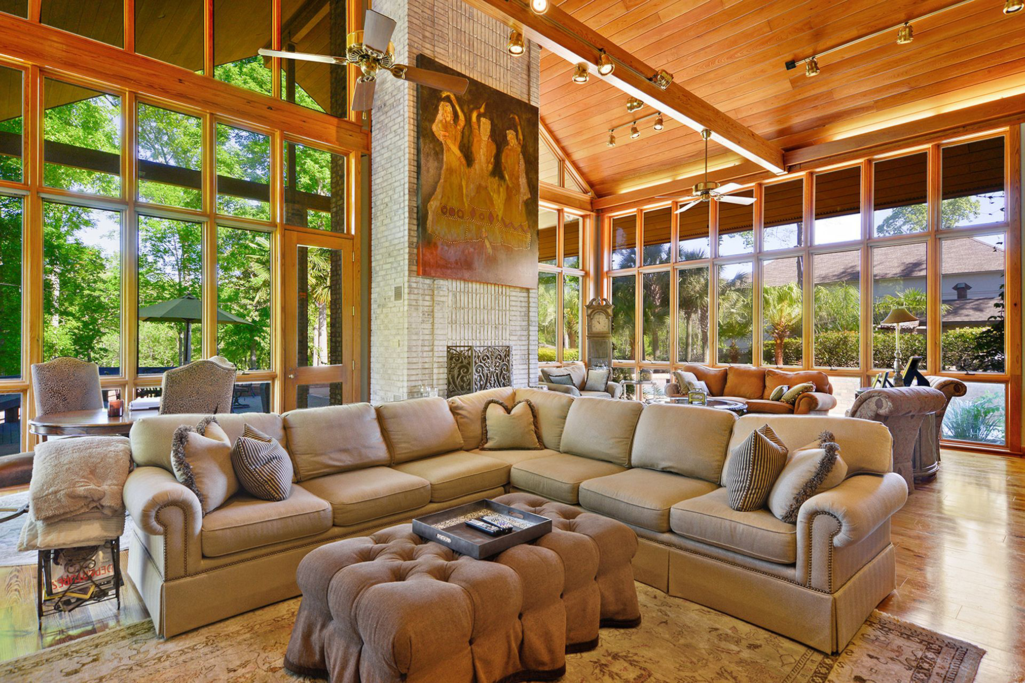 Within the Walls: This home on University Lake was built from materials salvaged from plantations, old homes and farms across the South. Incorporating a gourmet kitchen, a basement theater complete with a hot tub, a wine cellar, a children’s suite and a master suite with a two-story closet, this home offers a combination of old charm and supreme luxury.