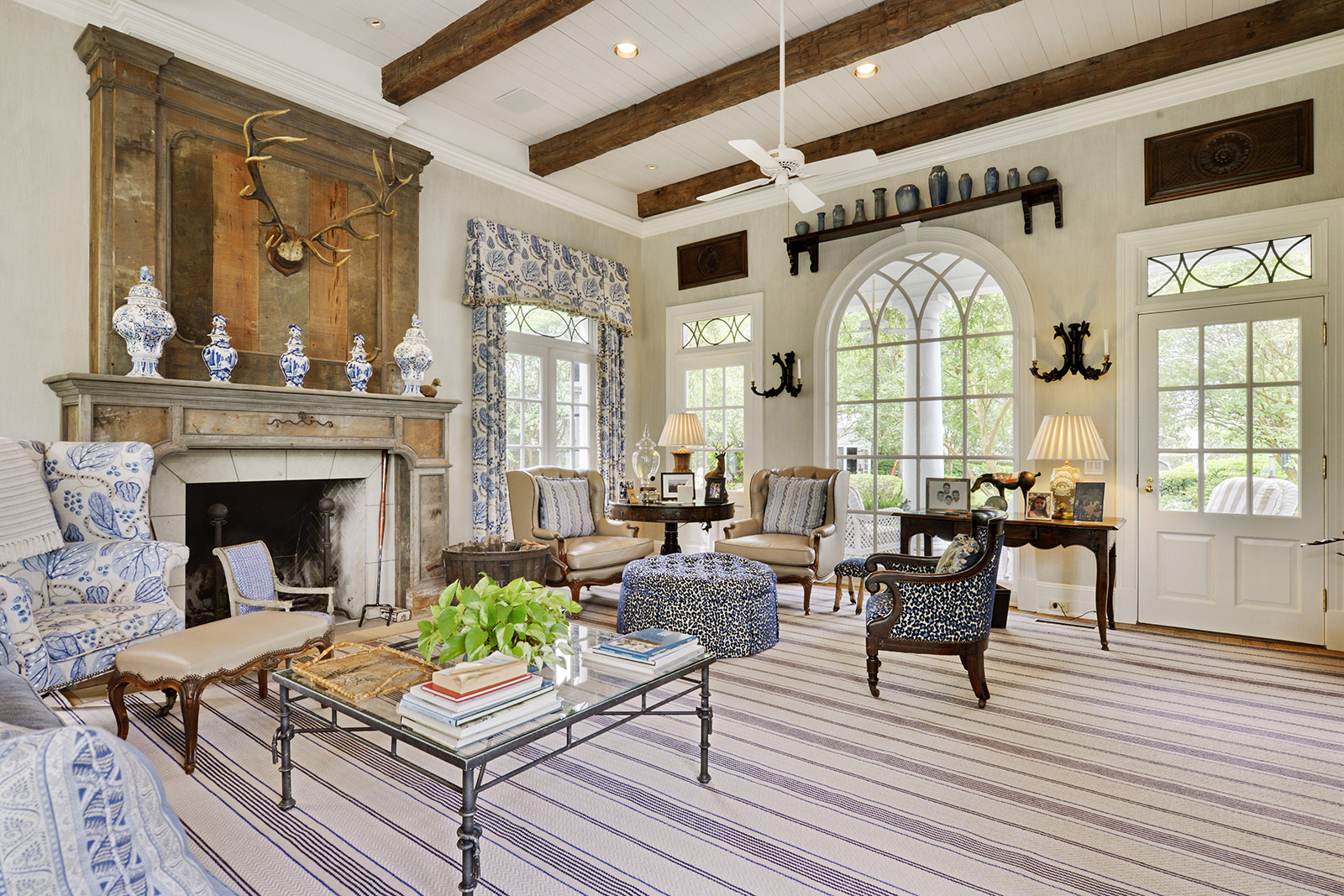 Within the Walls: This French-style home in the Country Club of Louisiana draws its interiors from around the world, with a 150-year-old front door and pavers from France, as well as painted pool tiles from Italy. The kitchen and keeping area are warmed up with cherry cabinets, while the master suite has his-and-hers closets.