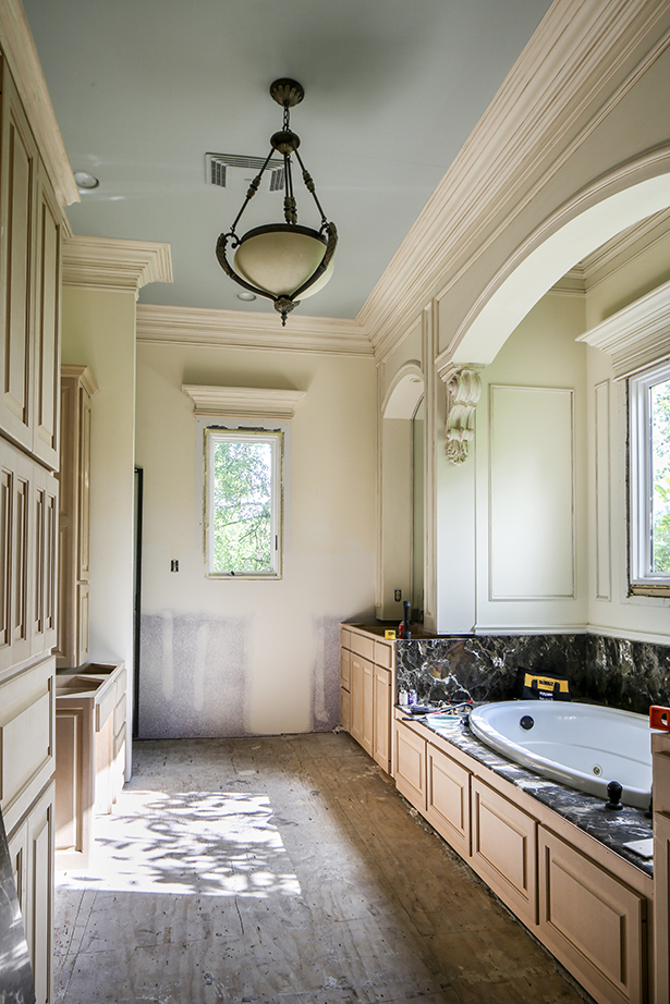 And while many families who flooded are taking the opportunity to go in a different design direction when remodeling, the McIntyres are making very few changes. No walls have been reconfigured because the floor plan was already open. Most furniture and even the drapes and rugs were saved thanks to nearby friends who showed up en masse to help before the floodwaters rose too high. And the duo loved the stone in the bathrooms and the granite in the kitchen, so they are simply reinstalling the same patterns they had before. Color to the walls and faux finishing on the cabinets are a few of the minor changes that they are making to acknowledge that a complete reconstruction has taken place. They anticipate the entire house to be complete around the beginning of June.