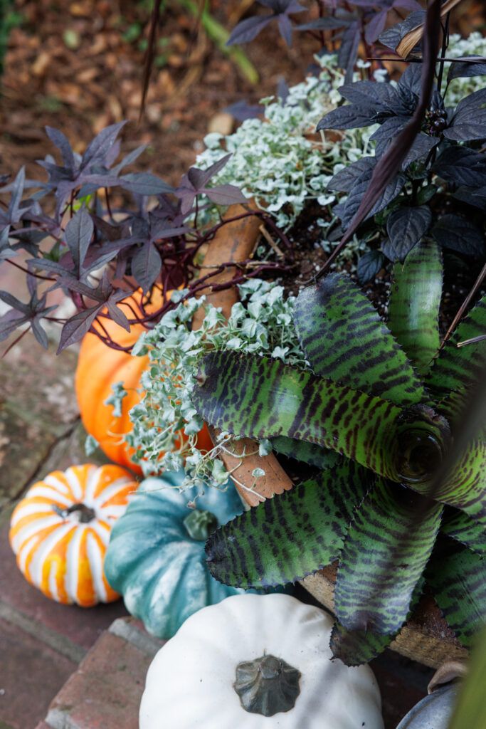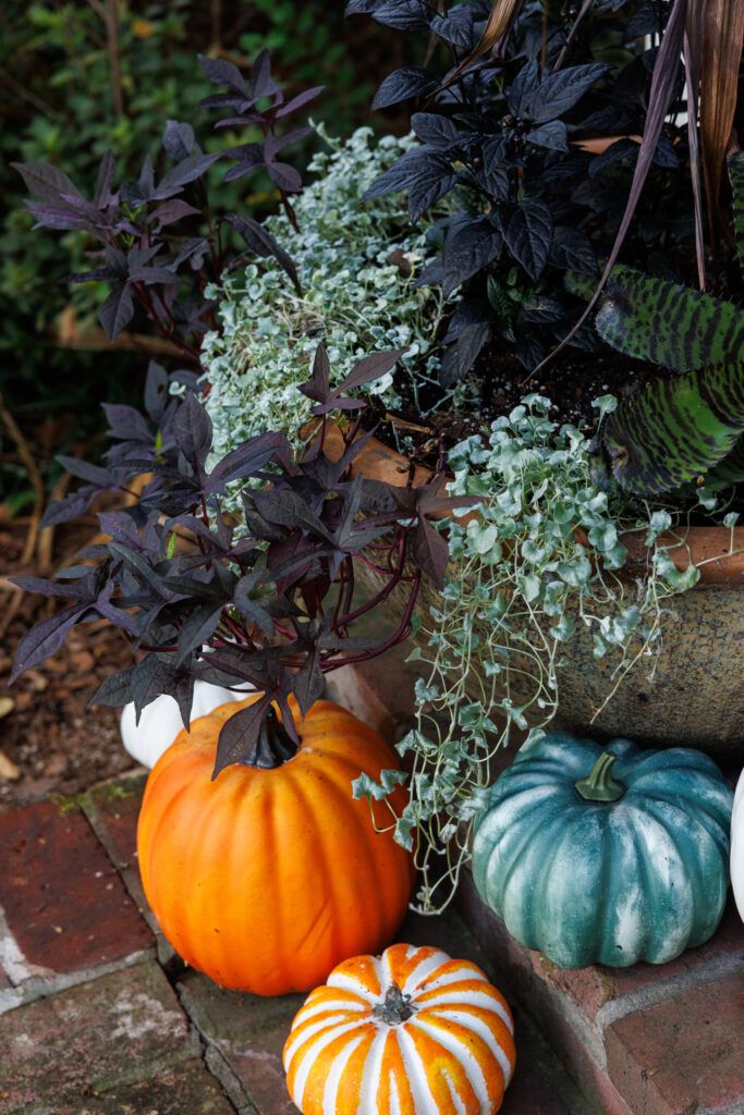 Black is not a typical foliage color for plantings and front porch décor, but when used wisely, it creates a bold and dramatic aesthetic. Embrace the dark side this Halloween for a porch that is unforgettable!