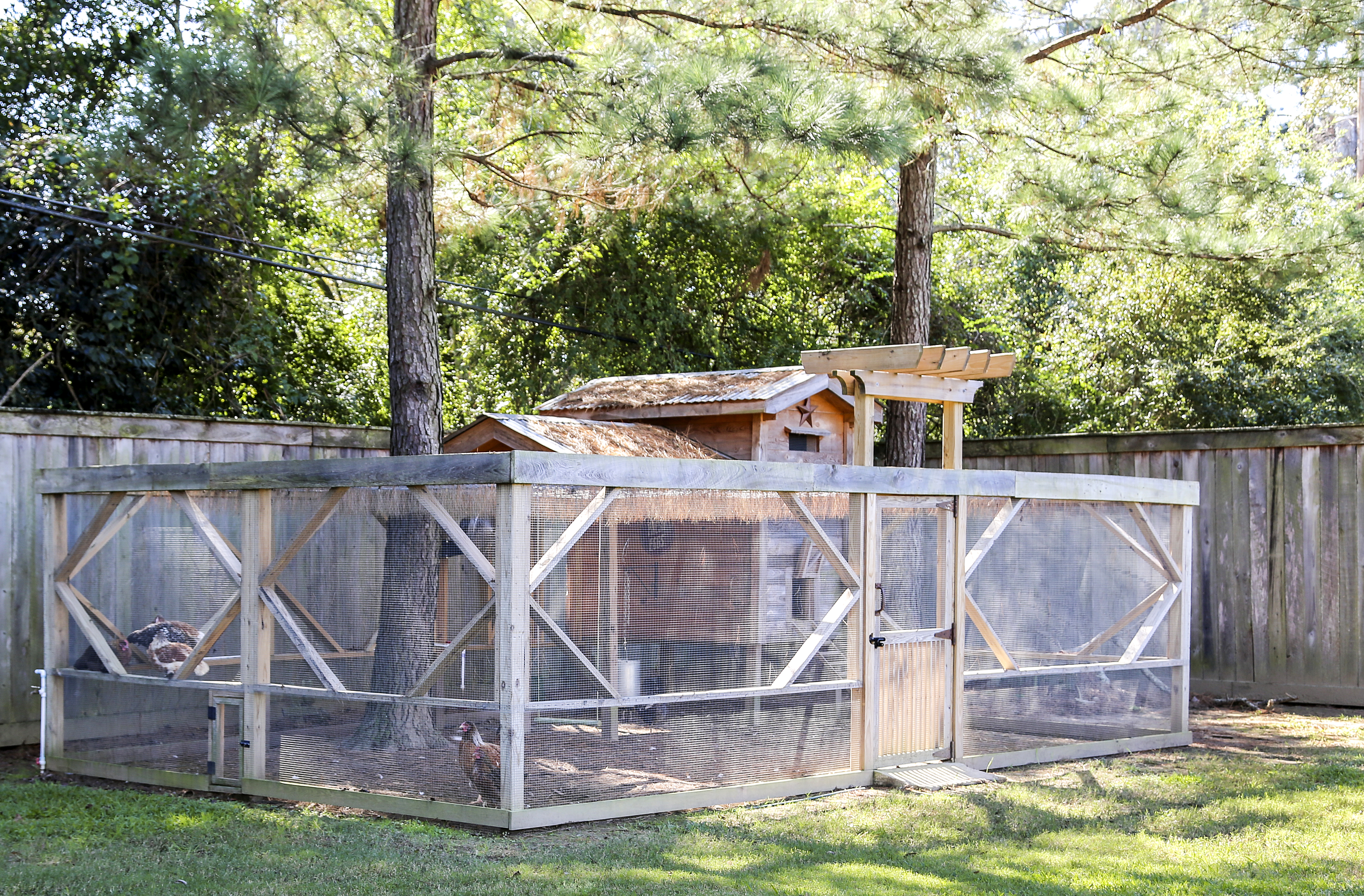 Meanwhile, Brent and the kids were coming up with their own DIY addition to the backyard: a chicken coop in a shady corner. They drew up the design together on paper and spent a summer working on the construction project, with help from friend David Ashley and his son Grant.