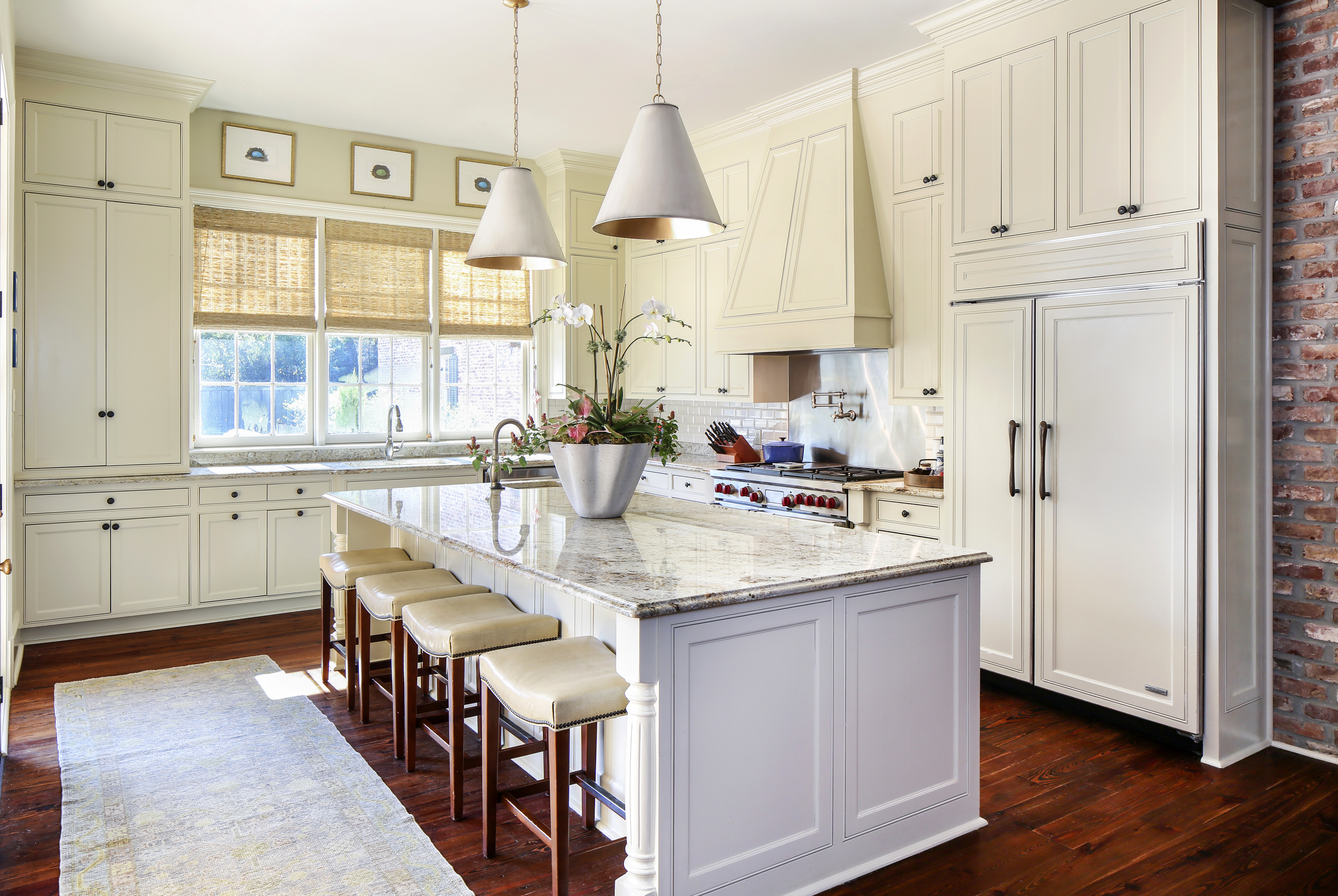“We knew that when we began our larger renovation, we wanted an open concept with large family rooms, high ceilings and a big island in the kitchen for the kids to gather,” Mary says. “I grew up in a Hays Town house, so we wanted that type of feel—big porches with brick and old wood features throughout the home inside and out.”