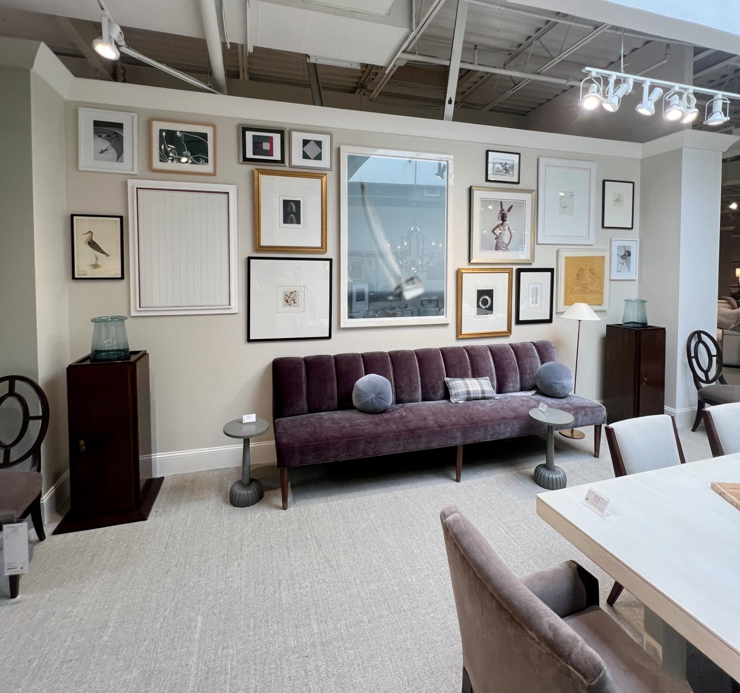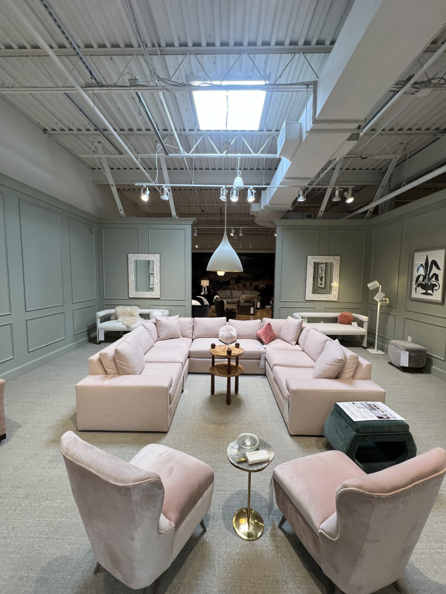 “The art placement at market really had me excited. I love a more unconventional approach to hanging art. There is no right answer when it comes to art because it’s very subjective. Be creative and free-flowing with placement! The more random the better. A few showrooms did this really well. I love this approach to art because it creates something interesting to look at and is a great conversation starter. I think there is a push for less perfectionism and more expressionism in the home. I encourage you to pull out the random old frames, mirrors and art in the closet and hang them all together in one big collage. If you aren’t sure where to start, Ann Connelly is a great resource.”