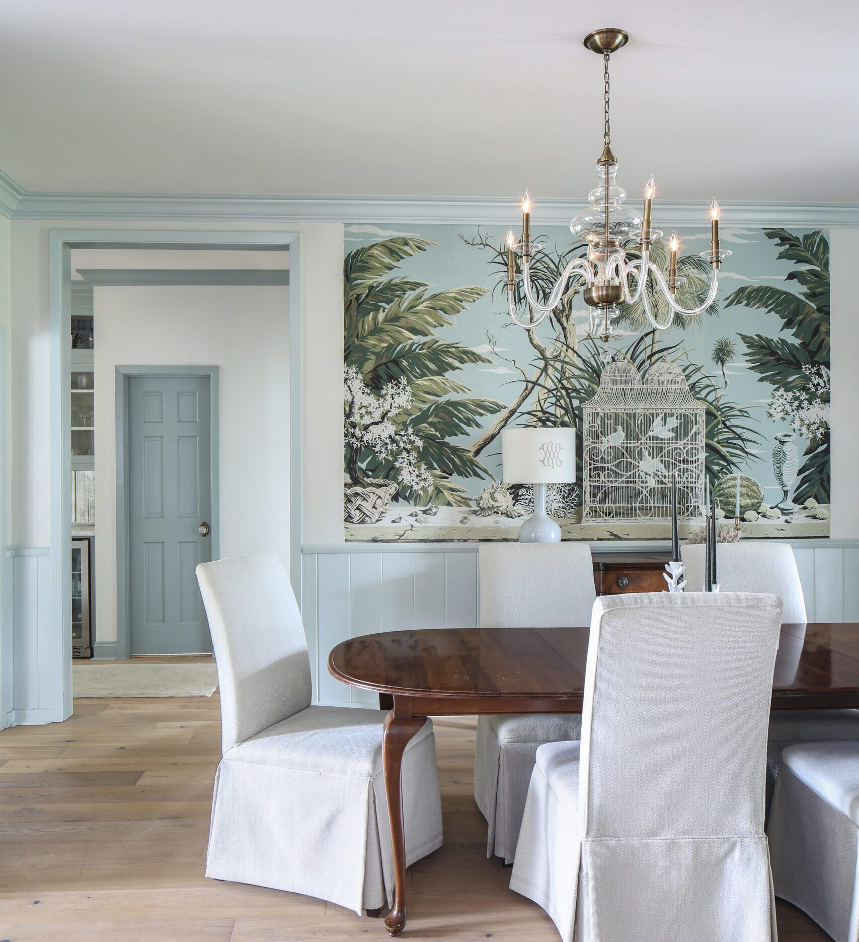And then there was the dining room wall with that eye-catching mural. “I’ve always been drawn to that Chinoiserie style,” Heather says. “I loved that mural, and I was dead set on keeping it.”