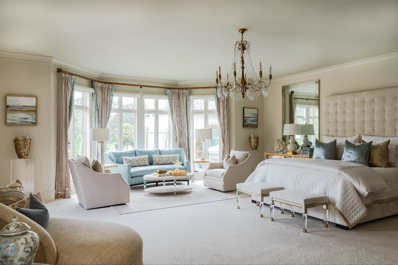 “This is how you accentuate a house with a ton of architecture,” says Miller, noting the streamlined furniture he chose. “It doesn’t need all the busyness. I just let the neutral tones accentuate the architecture.”