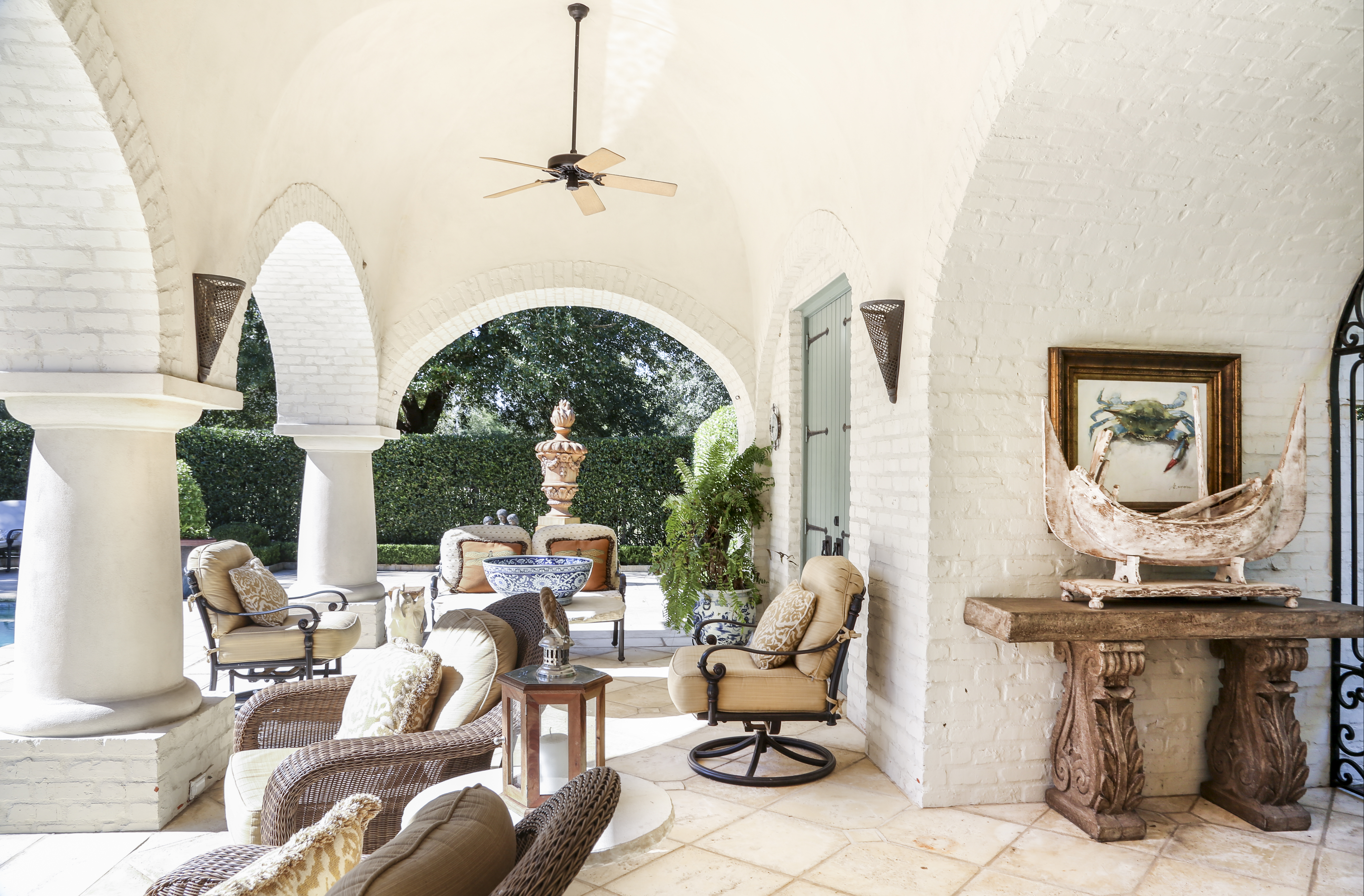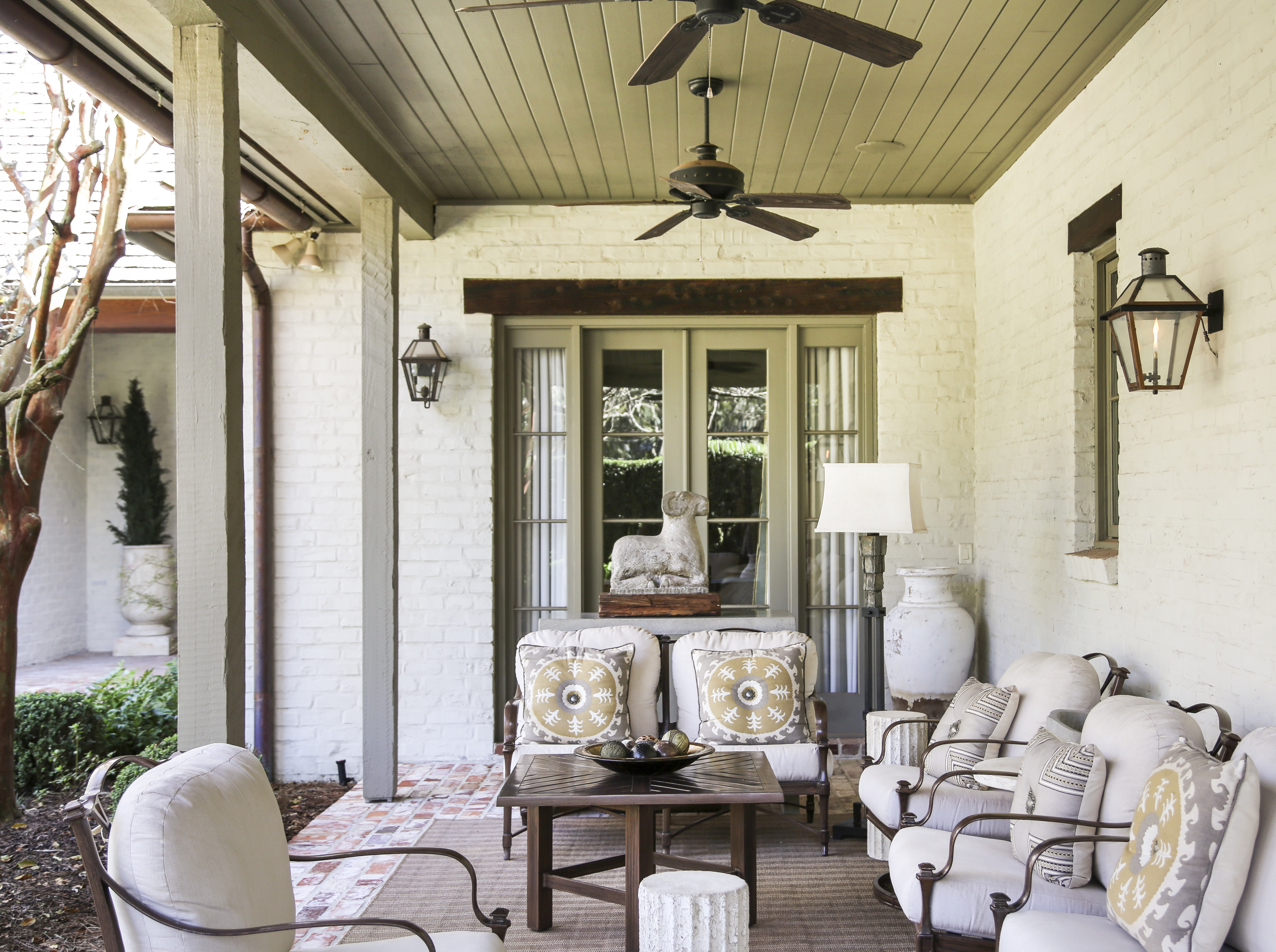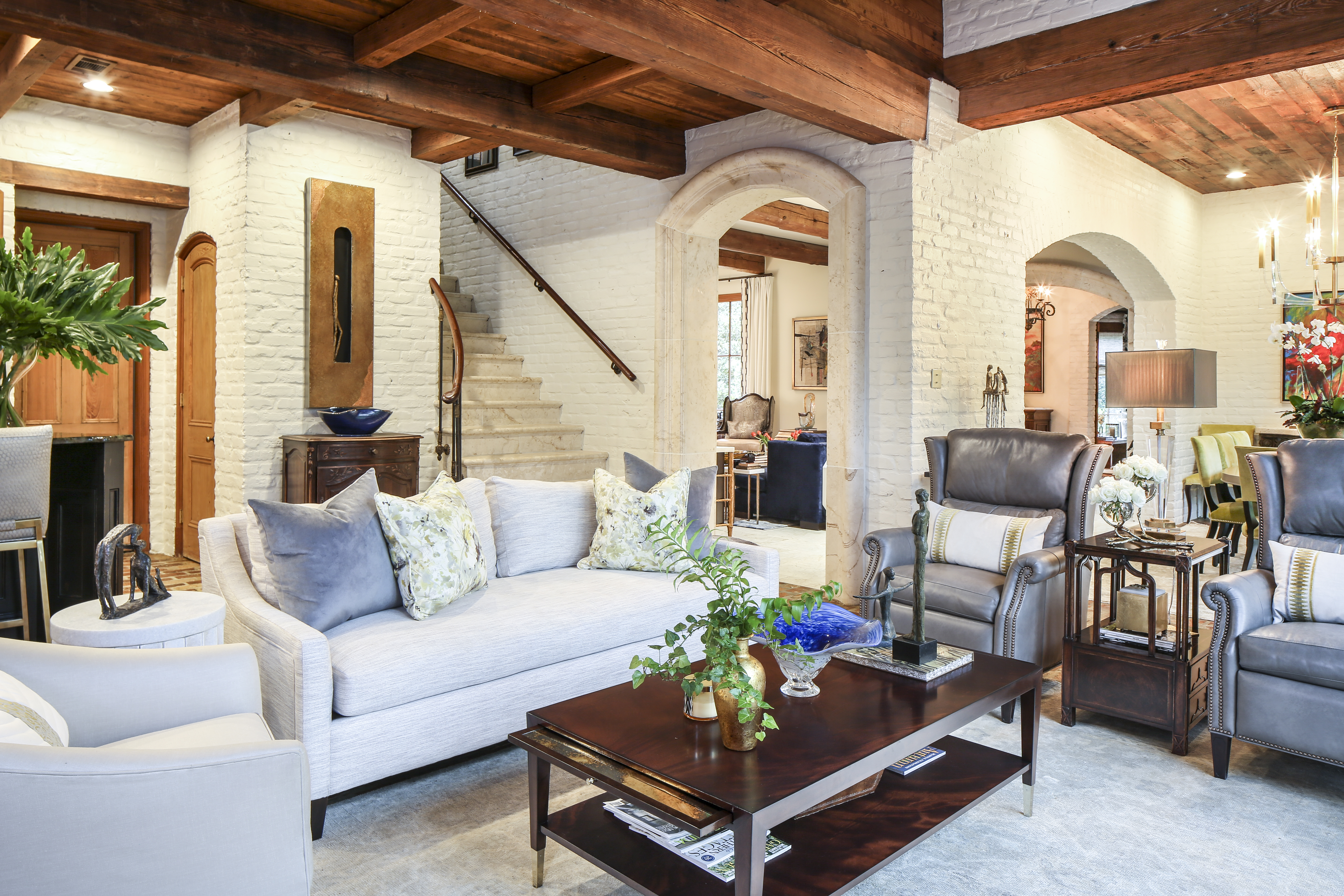 Aged bricks and cypress beams. These are two of the hallmarks of refined south Louisiana architecture. But when layered only with dark antiques and heavy draperies, these elegant interior elements can take a space from classic to claustrophobic.