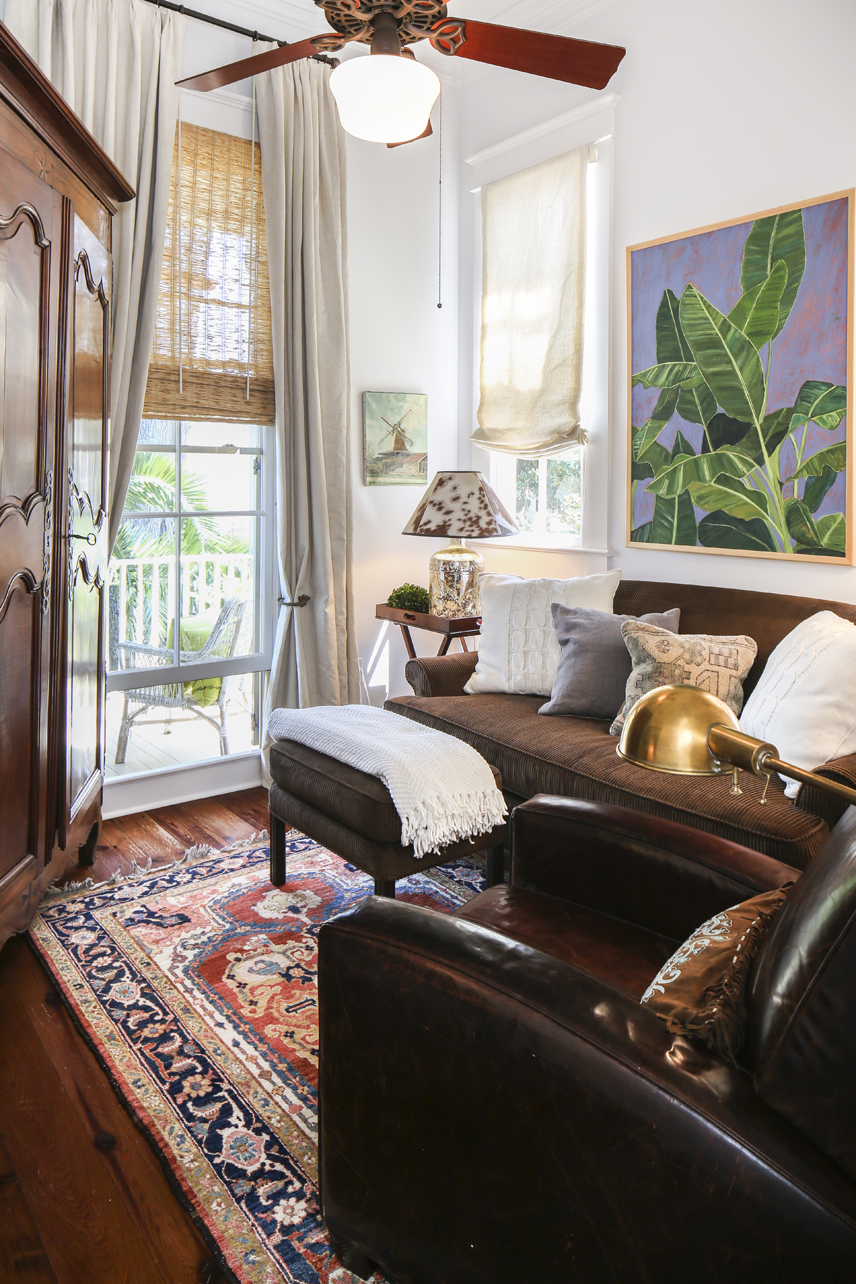 The home, then midway through the construction process, was tucked back on a small lot between century-old bungalows and cottages. Contractor Michael Glisson had chosen a raised cottage style that blended perfectly into its surroundings, and Rachel and Kirk, a commercial Realtor who owns Williams Properties, immediately appreciated the classic Southern details like deep porches, tall shutters and brick steps.