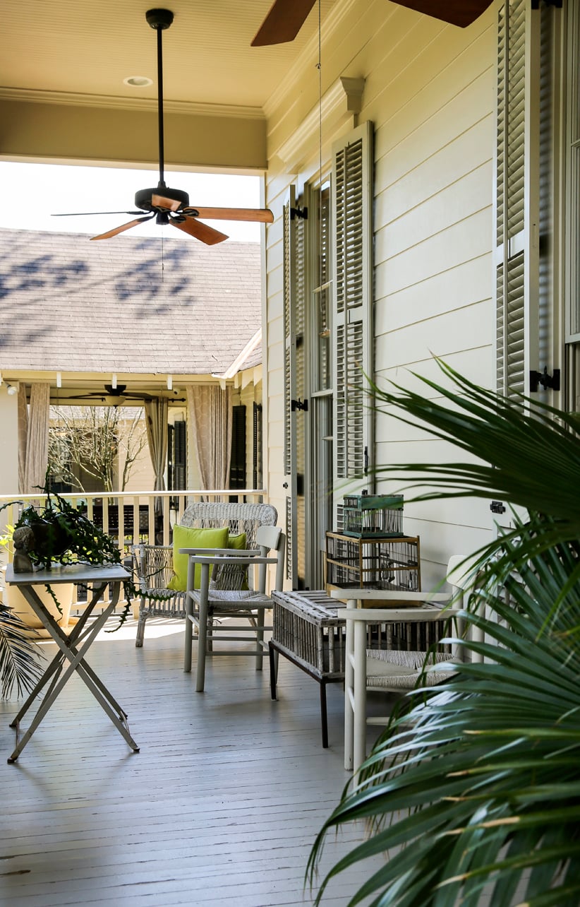 After officially making the new house their own, the Williamses made only a few tweaks to the existing plans, including replacing a clawfoot tub with a pedestal style and exchanging solid front doors for antique cypress doors from The Bank in New Orleans. The couple also eliminated a half wall between the living and dining areas, giving them a completely open and casual space that stretches all the way back to the kitchen.