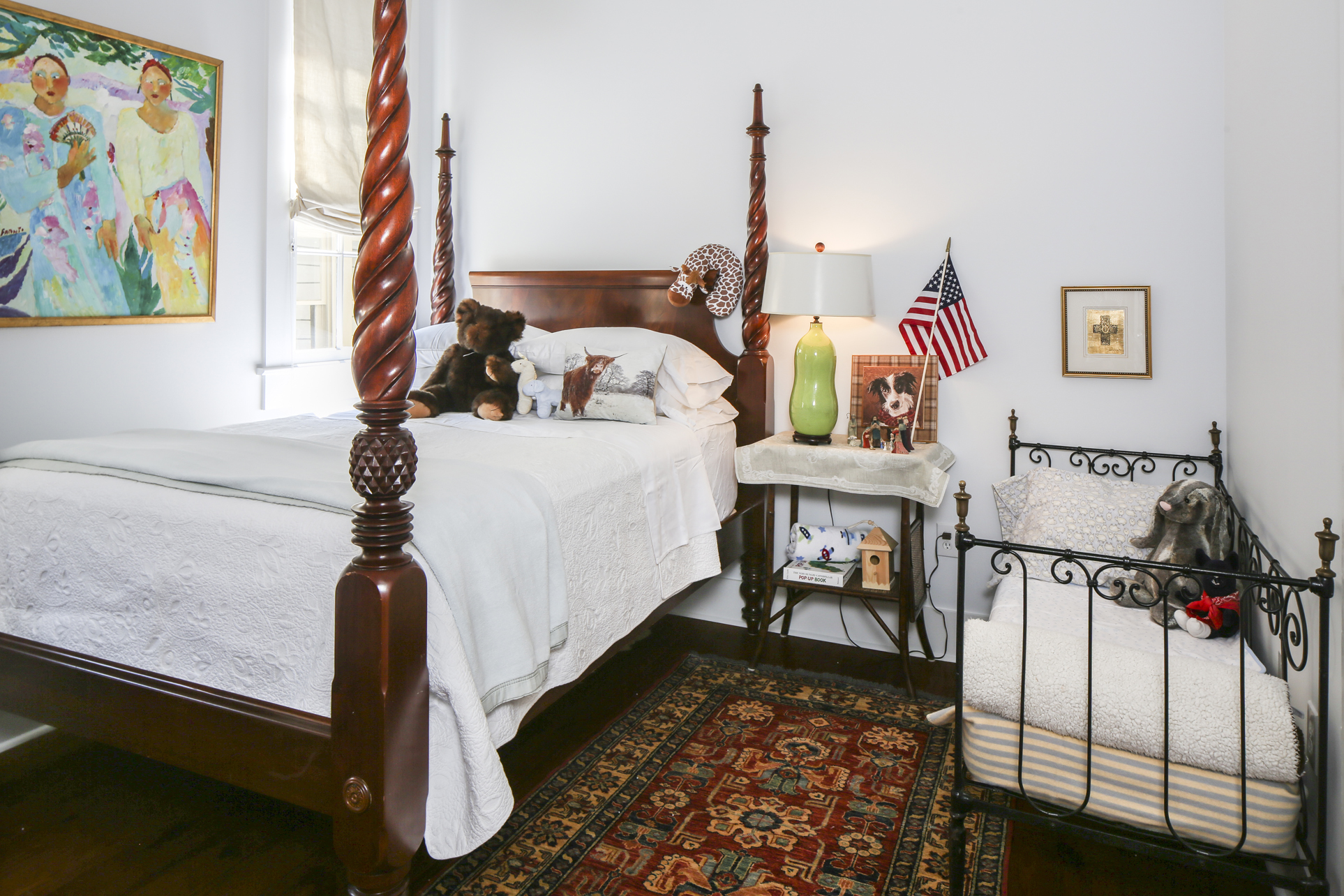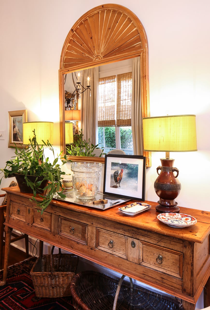 Some of Rachel’s most recent acquisitions are small but significant—mementos like a vesta match case and a delicate brooch she discovered while in Scotland visiting her daughter Aaron. “I want everything I bring in to mean something, especially because this is a smaller home,” she says. “We live in every inch of it.”