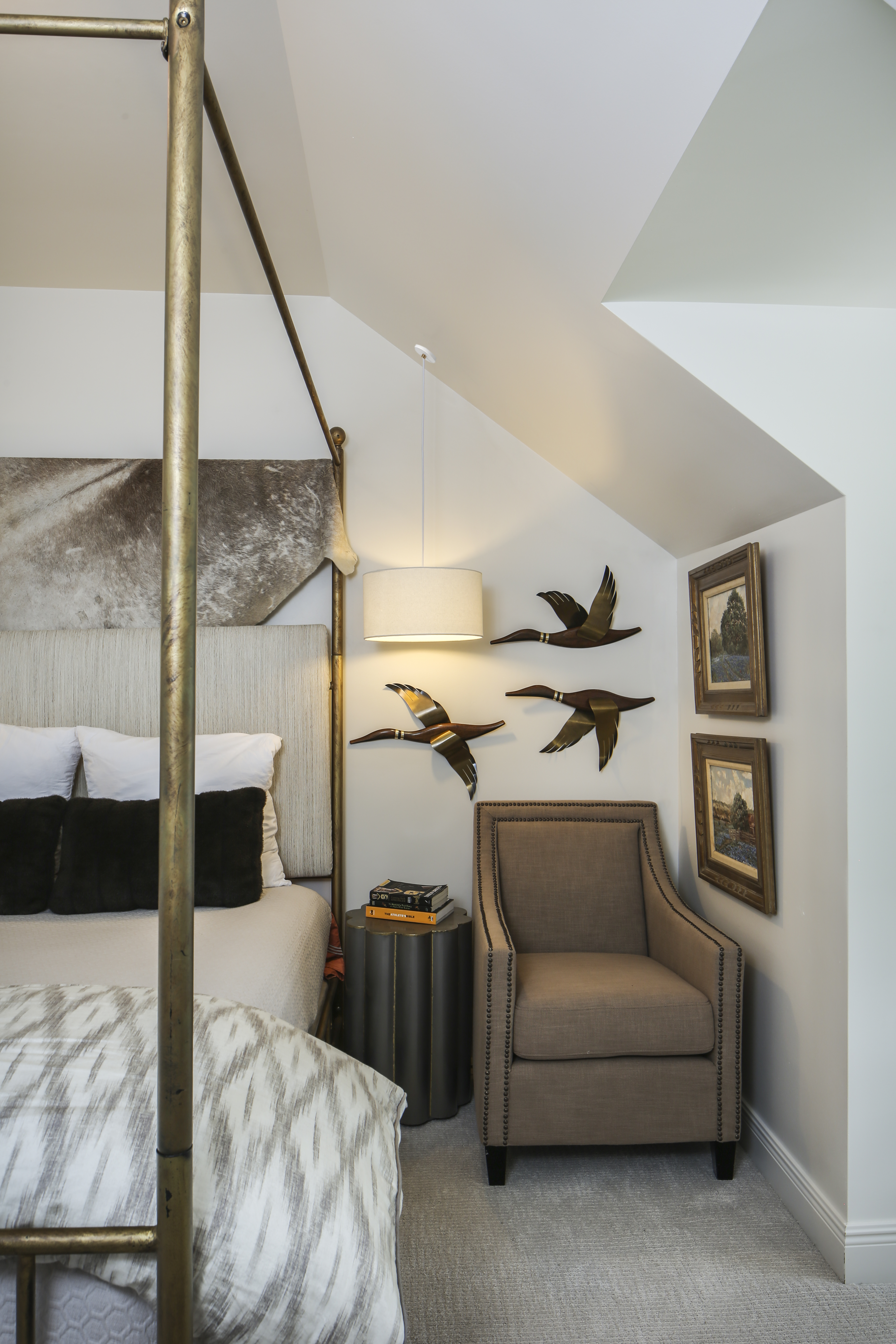 Subtle touches like ducks and animal hides give the feeling of the outdoors while maintaining a chic overall look in this boy’s room. Photo by Melissa Oivanki.