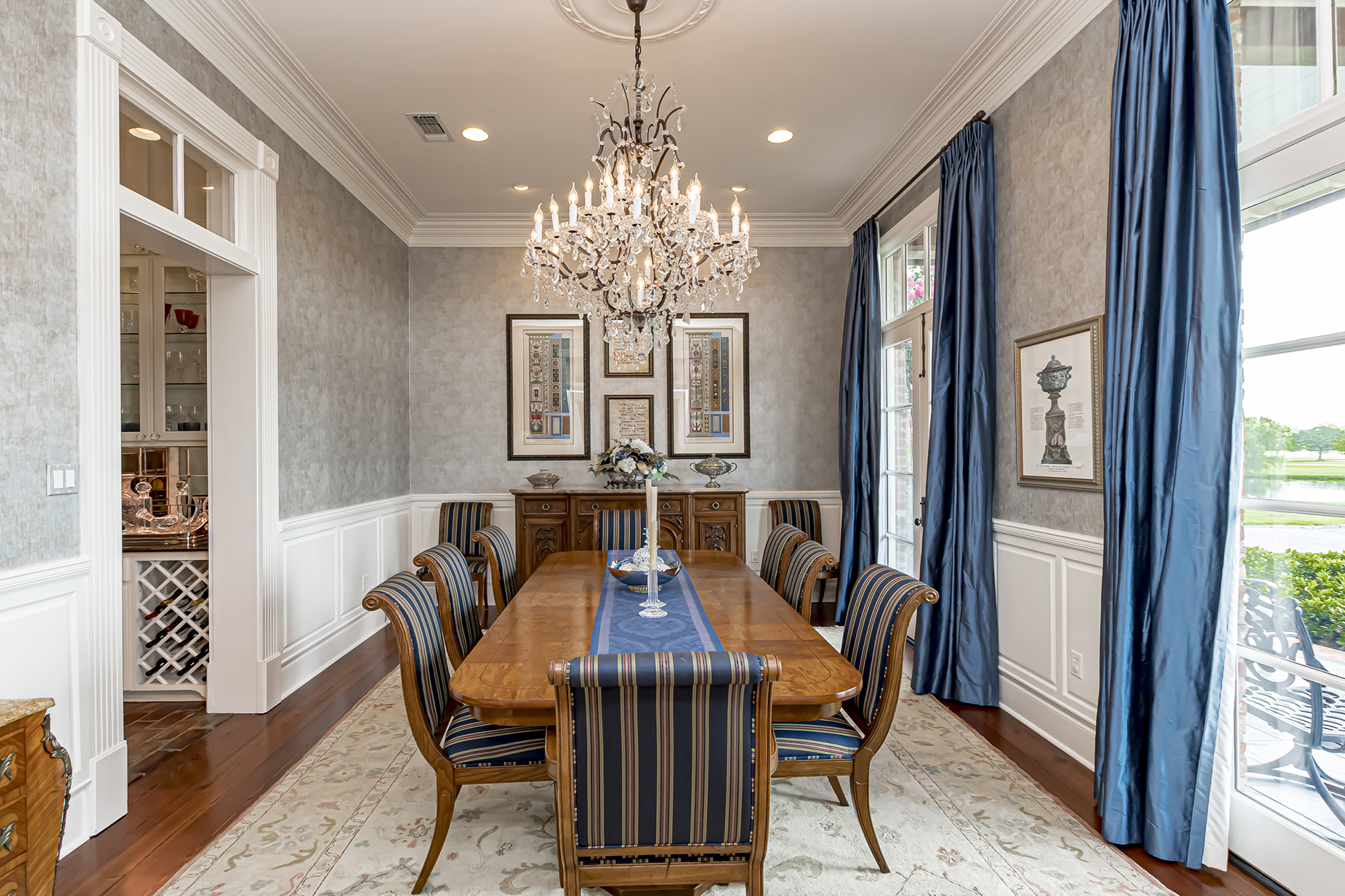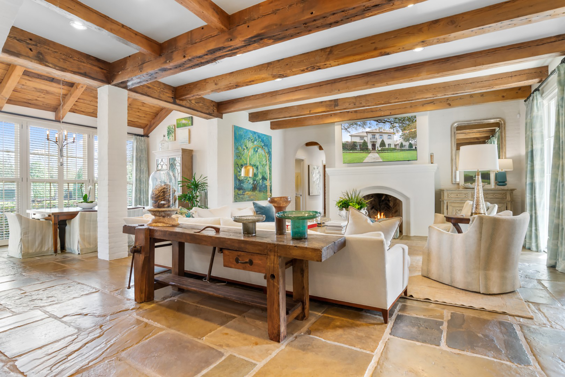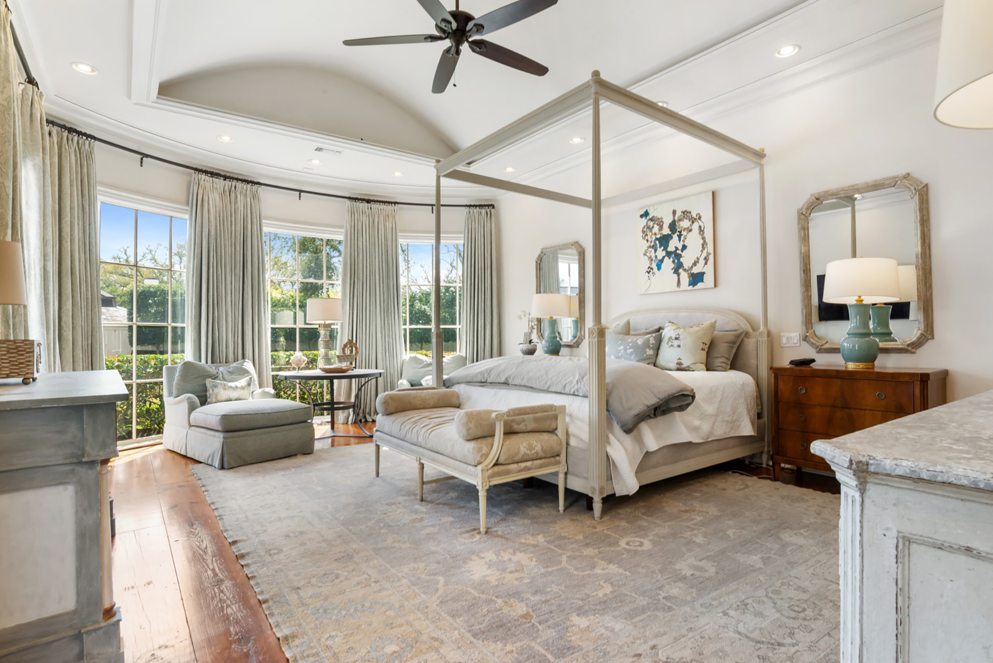 Within the Walls: This home designed by architect Al Jones is a light and bright take on the classic French style. The incorporation of wood beams, arched doorways and white paint tie it back to the traditional look, while elements like French-door cabinetry in the master closet keep it elevated. The spacious three floors include a media room, game room, custom bar and three fireplaces.