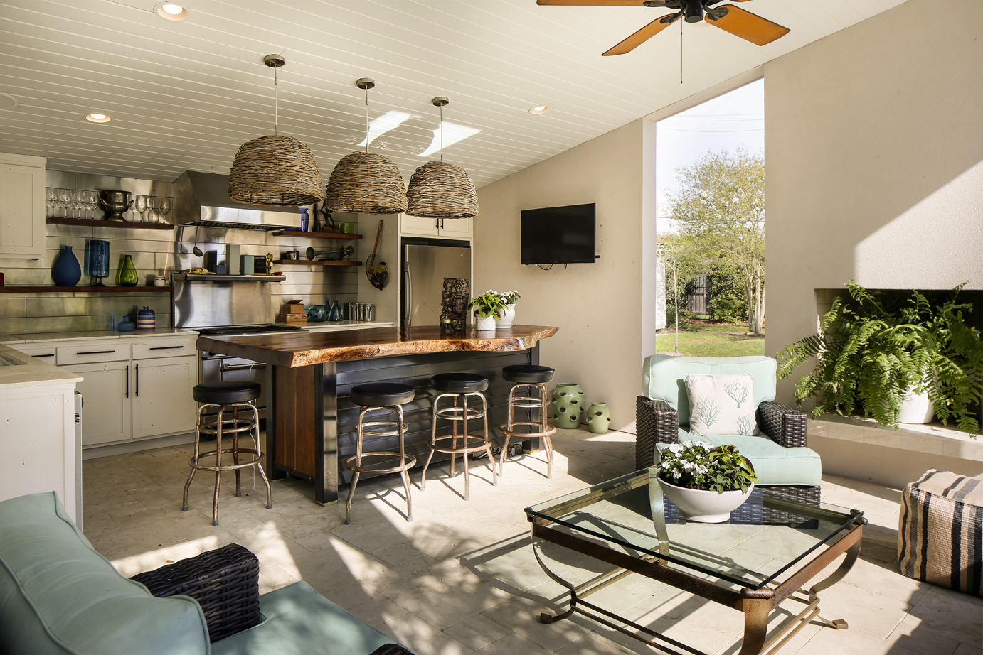 Claire is quick to see the potential in a relic, which came in handy while looking for a home. She and husband Rich began searching for a mid-century modern house in the area with a desire to refurbish it in a style all their own. With two grown children no longer under roof, this new home could be a welcoming spot—indoors and out—for entertaining family and friends. But the Majors, living in a house they had updated in Oak Hills, couldn’t find the right Brady Bunch-style retreat to fit the bill.