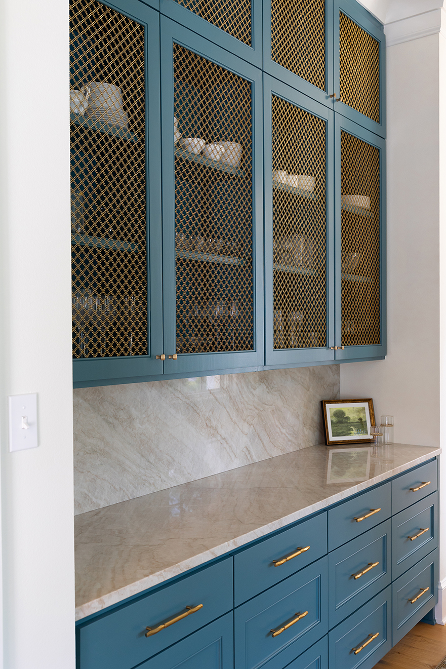 Even the family’s golden retriever, Birdie, is loving her new digs, from a built-in kennel beneath the counter in the laundry room to the wide open outdoor spaces. “She’s like a whole new dog in this house and outside in her big yard,” Jennifer says. “And she loves to swim in the pool.”