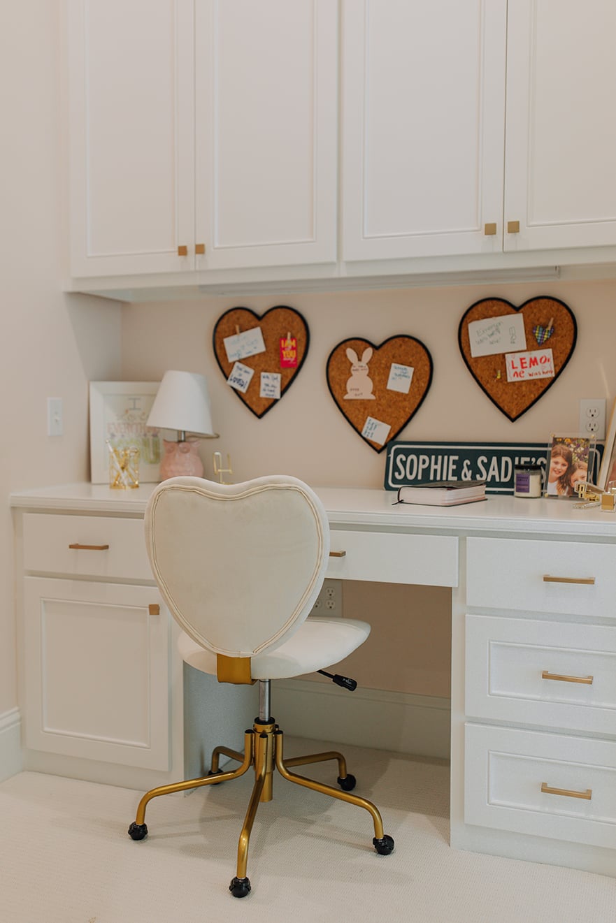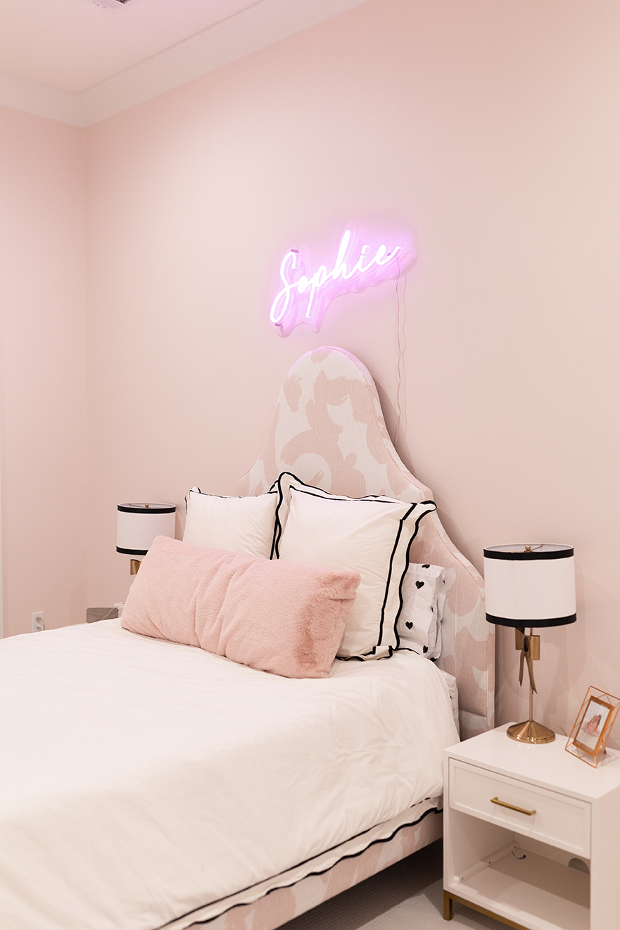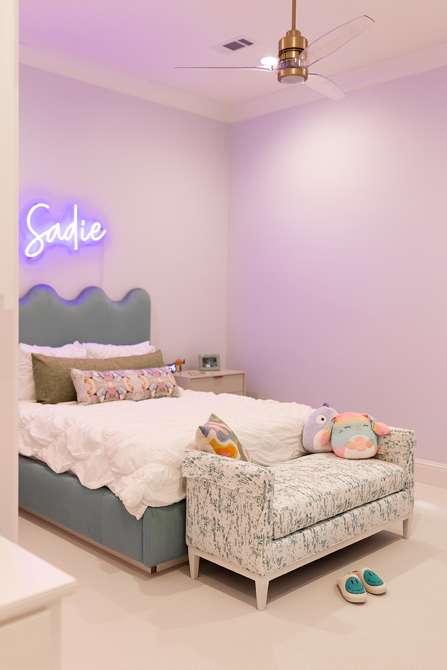 Other than pandemic-related delivery delays on a few appliances, the construction process proved to be a seamless one. One of the biggest reveals before move-in day was the children’s area, which Hilary had fine-tuned after getting input from the girls on their favorite colors and things they enjoyed. “She asked us not to pop in for a few days, and then when everything was ready, she had us all over for the girls to see their new rooms,” Jennifer says. “They were just giddy. They were so excited, they were actually squealing.”