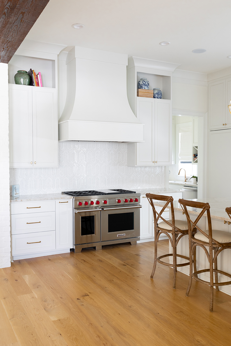 That desire to host gatherings led to the creation of a sun-filled open kitchen and living room that leads out to the pool area. Alan, who Jennifer says is the family’s main cook, selected all of the appliances for the kitchen. “He’s always trying new recipes,” Jennifer says. “Our favorite right now is a beef tenderloin that he cooks for hours and then shreds and uses to make amazing sandwiches.”