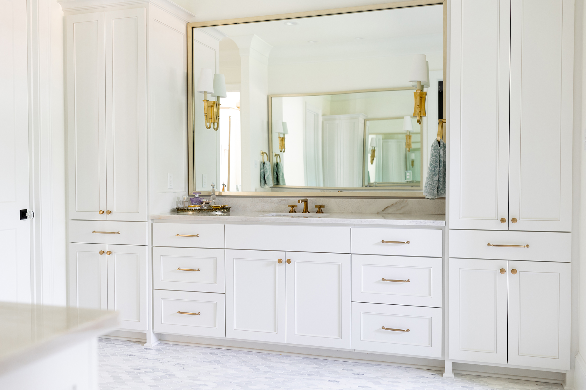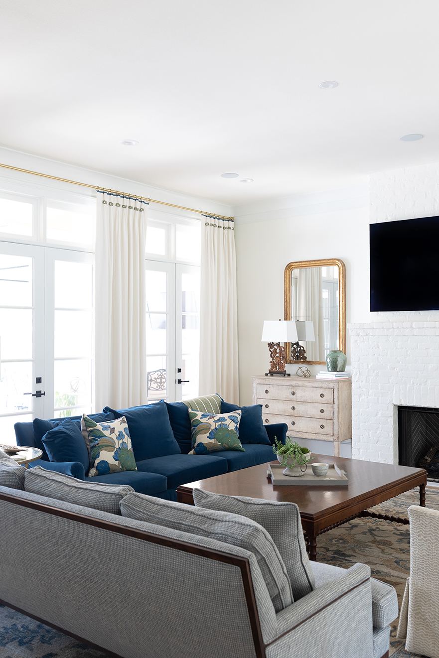 Aesthetically, Hilary Smith Kennedy pushed the Maltbies to infuse their new home with more color than the previous one, which had mainly featured a white and gray palette. They landed on a nature-inspired wash of blues, greens and creams that boost the mood while still managing to feel like neutrals. “We focused on long-term, livable colors that would stand the test of time,” Hilary says. Adds Jennifer, “I’m definitely traditional, so we didn’t want anything too crazy.”