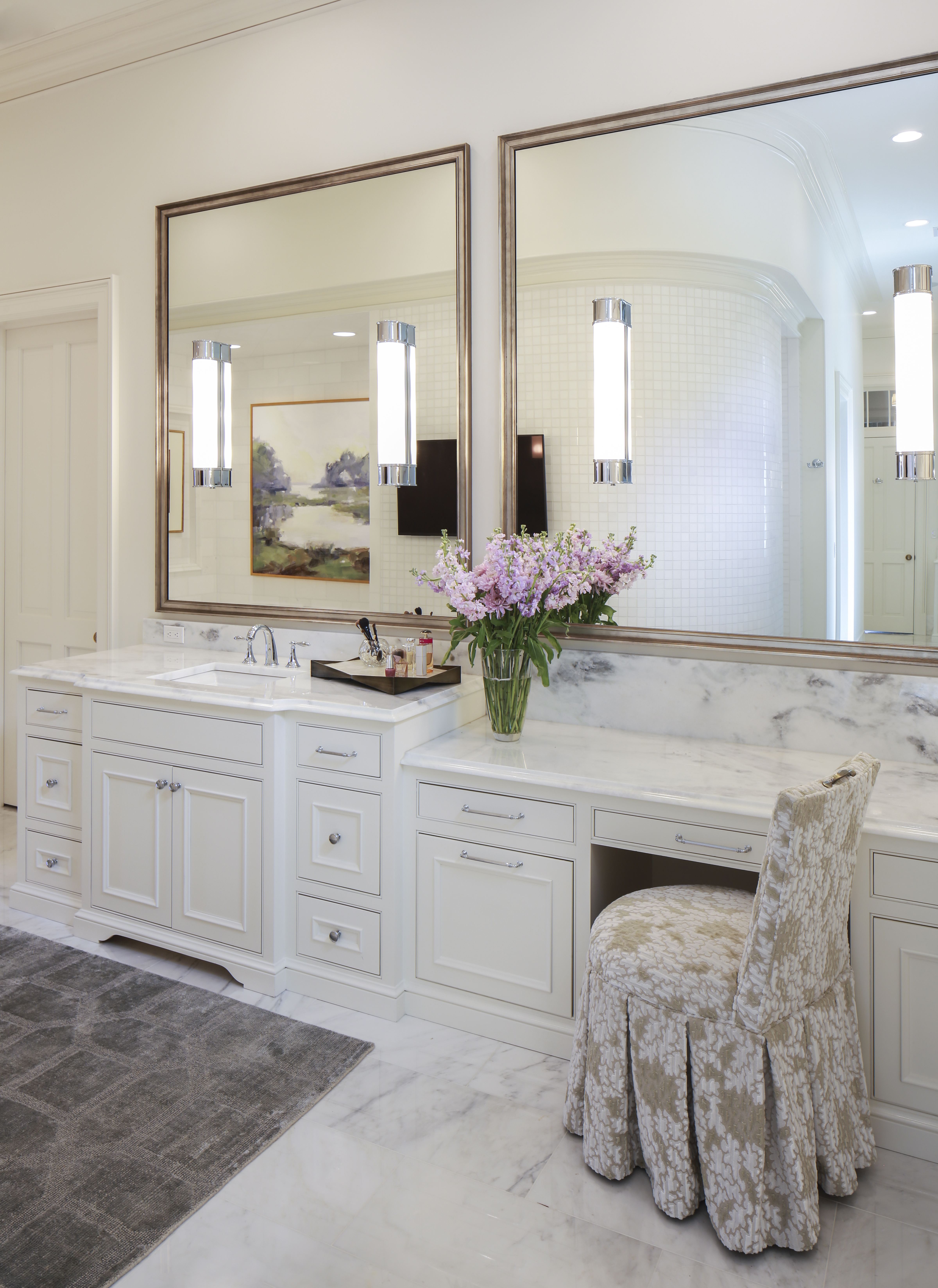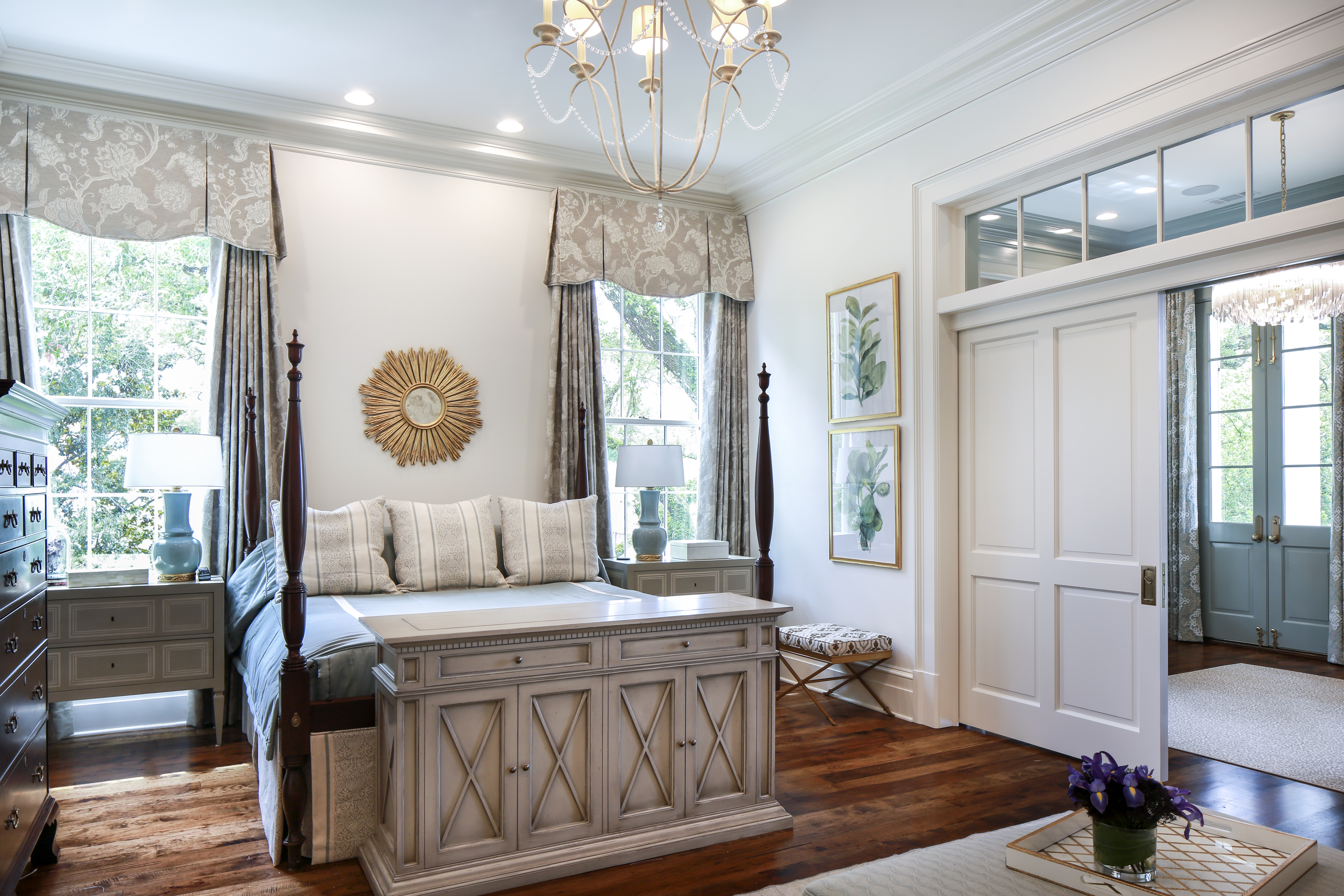 The designers also managed to incorporate meaningful pieces that had been with the couple for all of their 40 years together. The Henkel Harris bed that they obtained from McMillin when they were first married is once again the centerpiece of their master bedroom, but more modern painted nightstands give it an updated feel. And the dining table that once belonged to Bill’s parents is still a hub for big family meals. The location may have changed, but the emphasis remains on sharing time with the ones they care about most.