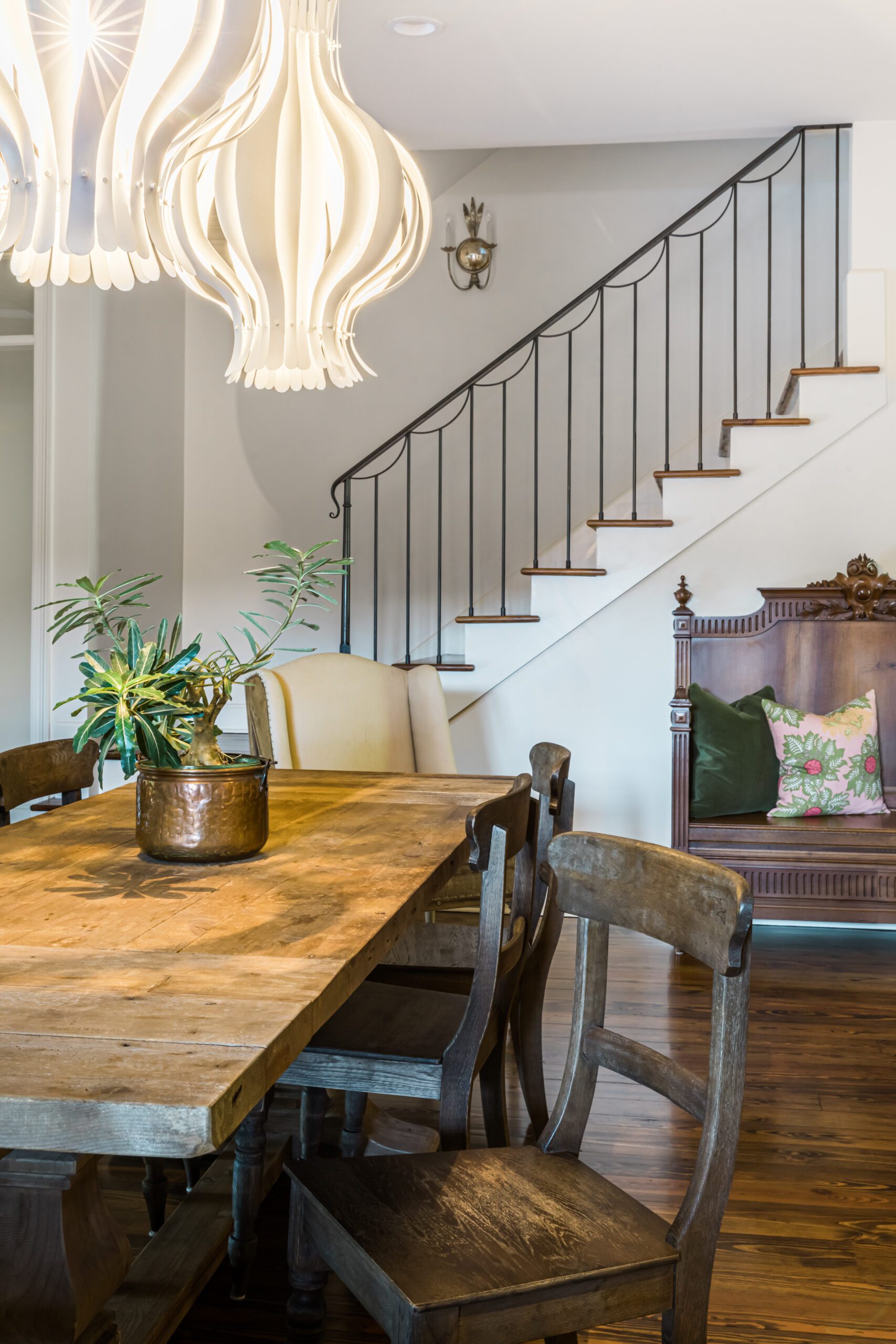 Enter Anne, who embraced Carmen’s call for a more lively look in a big way. “I had never used an interior decorator before because I love decorating and home interiors,” says Carmen, who first worked with Anne to select exterior paint colors a few years prior. “But I felt that Anne had more of an artist’s eye, which I needed because I had some ideas that I thought might be too out of the box.”