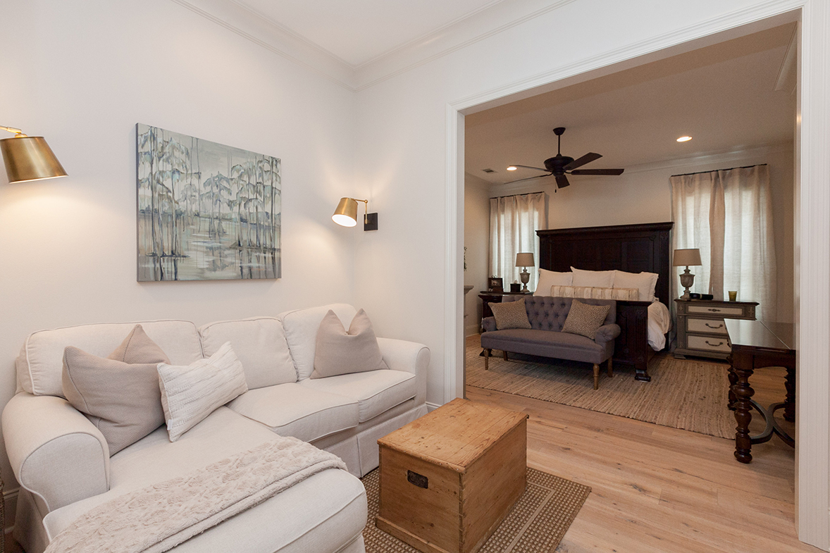 The couple enjoys sharing their outdoor space with friends as often as possible, and they also view the neighborhood as an extension of their everyday environment. “We’re literally at Bistro Byronz or Flambée Café twice a week,” Elizeh says. “We’re still meeting new people every week, and we love that there are concerts in the back here and events like the Mardi Gras parade. And the girls love to explore by the pond. Between playing and eating and working out, we really don’t have to leave here at all.”