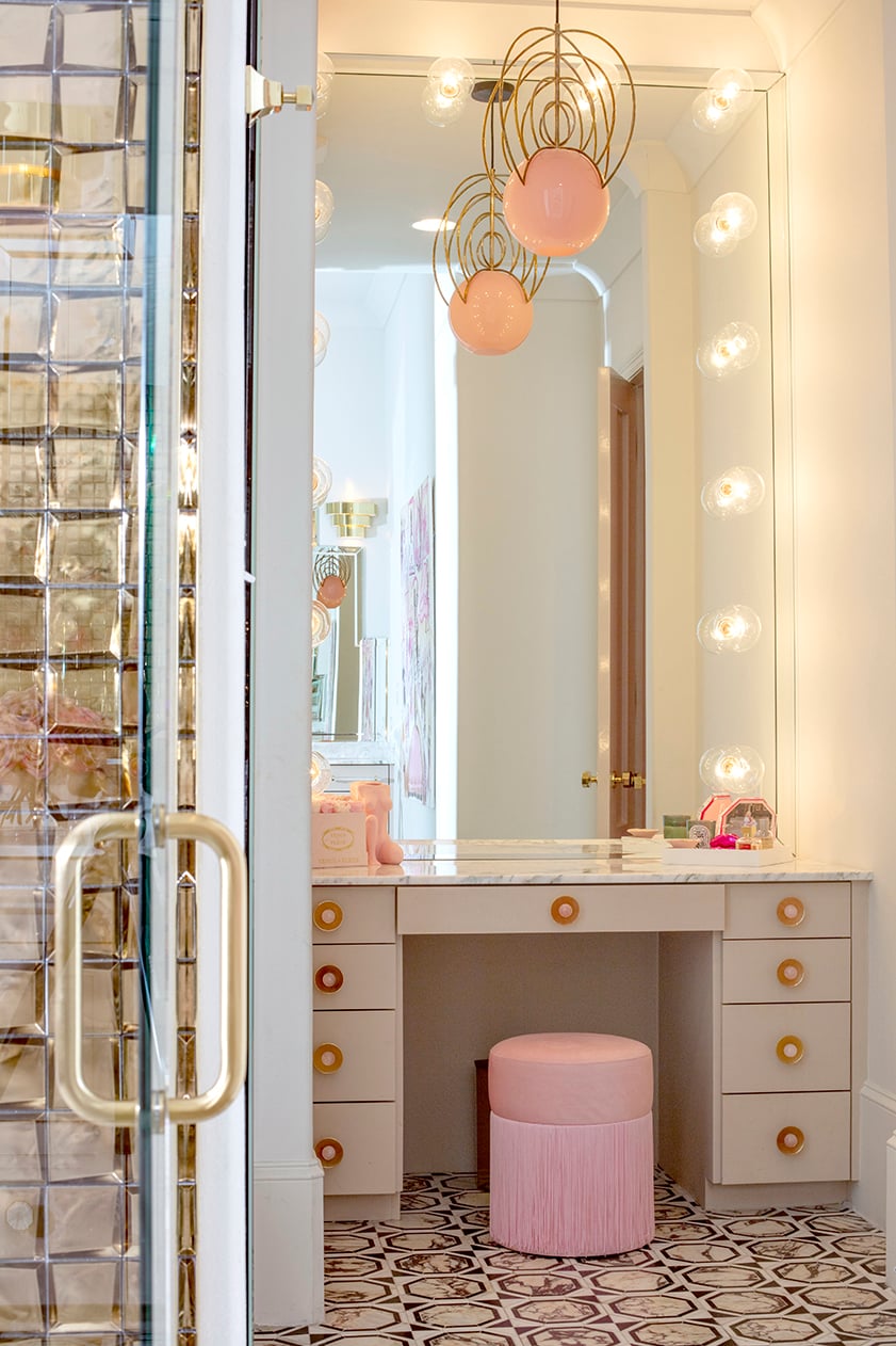 But with the same aesthetic throughout the home, Lexie doesn’t have to spend all of her time in the depths of her closet to feel that same joy, and it’s a powerful testament to being unapologetic about expressing yourself and your personal style. From the touches of pink in every room to the Moët vending machine, the bold choices not only make the house totally unique, but they allow the home to speak for its owners, and for the owners to feel totally represented within their home.