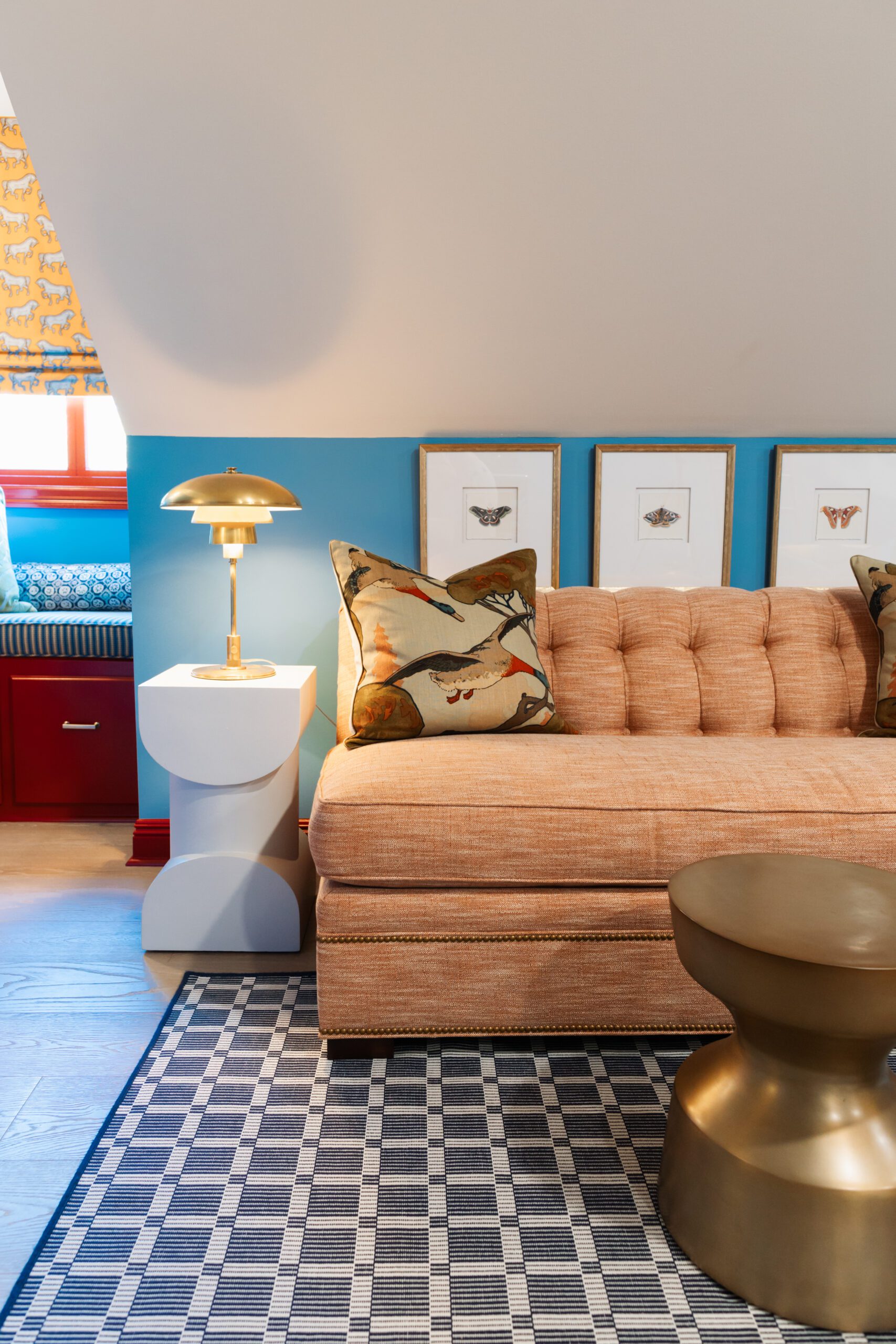 The first time Dan Bergeron toured the above-the-garage apartment that he was to reimagine into something that fit with the rest of the homeowners’ colorful home, he was transported back in time to the early 2000s. Shades of brown and blue were abound and geometric patterns were plenty.