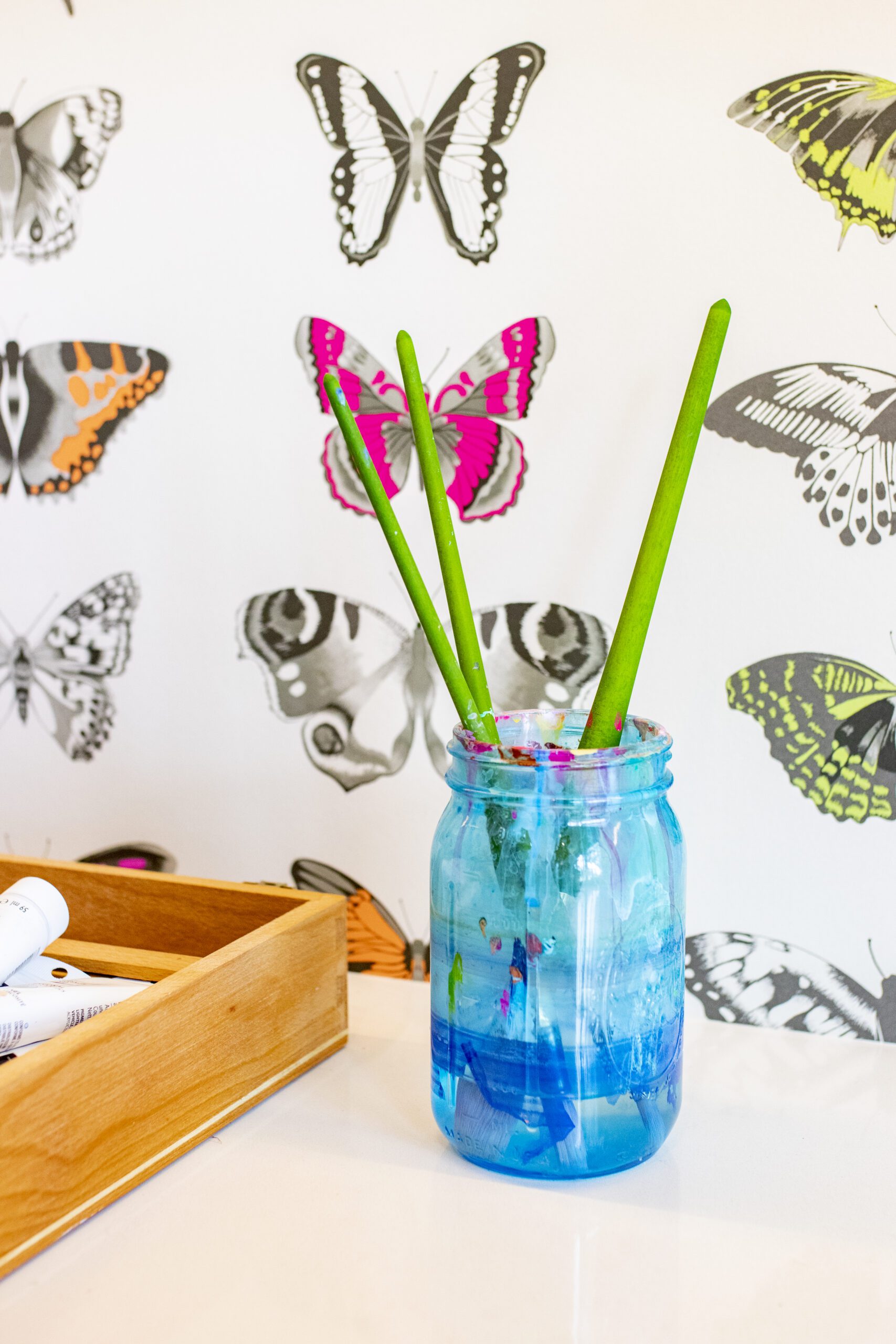 “This is strictly Kristina’s room, and we coined it the ‘craft room’ because she does more than just paint,” she says, “I wanted her to feel inspired by the space, and she’s a color-driven individual who appreciates patterns.”