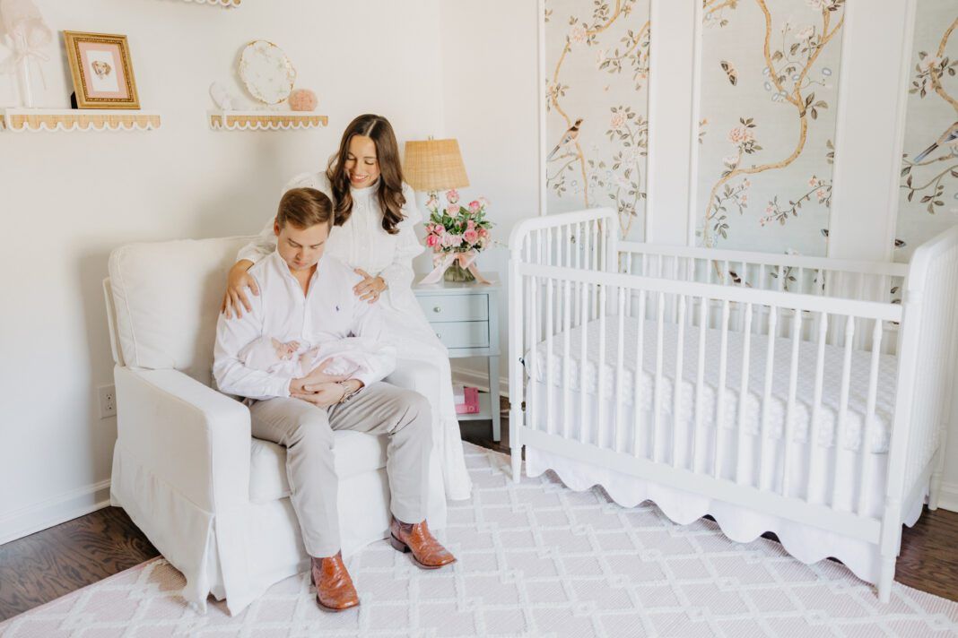 Emily says her favorite element within the room is the antique chest of drawers. “While I adore the wallpaper, I think the chest is my favorite because of its versatility,” she explains. It stopped her in her tracks while shopping at Revival Antiques in Scott, Louisiana. “It adds so much character to the room while serving as a changing station and storage space now. But it will easily transition into a piece that can be used for years to come in many different ways.”