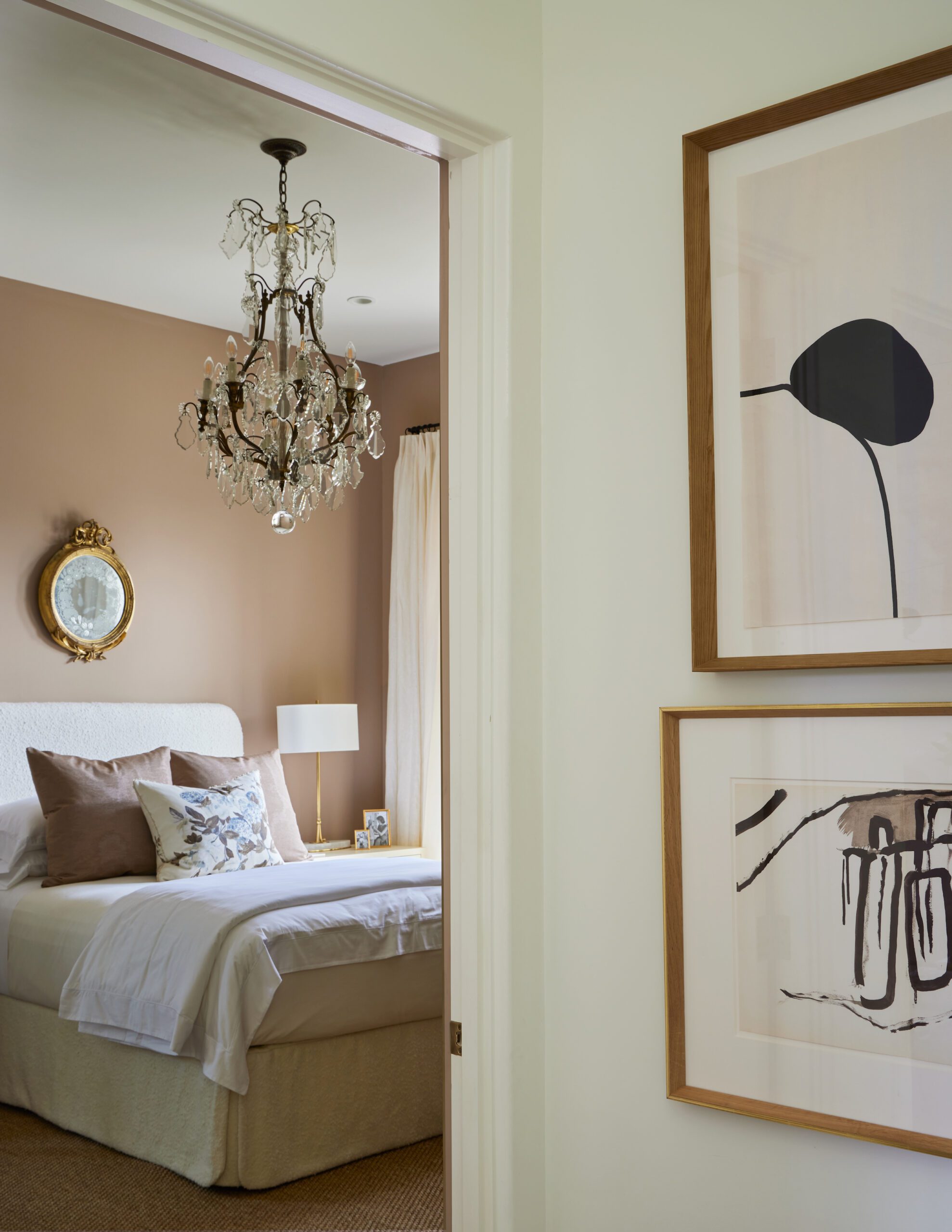 A gallery wall is a sophisticated surprise in this bedroom by Erin Mixson. Photos by Sara Essex Bradley.