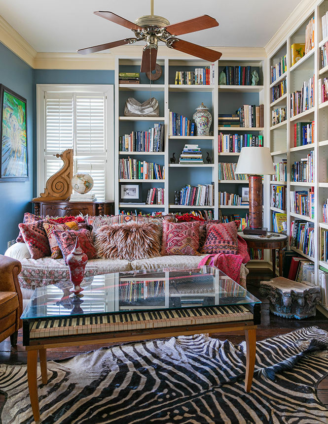 This belief is exactly why no prefabricated house filled with designer-selected furniture and accessories would do for this duo. The home itself had been well built by the previous owner, with finishes and design that the Hayneses appreciated: heavy wood doors from The Bank Antiques in New Orleans, a wall of windows procured from former Italian eatery Cipriani’s off College Drive, and casement windows from Huey Long’s house on University Lake. Layers of history were already in place, even though the house itself was only 25 years old. It was time for Joanna and John to add layers of their own.