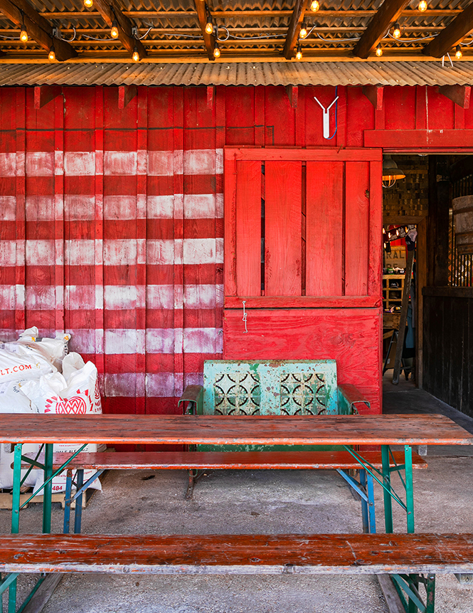 This keen vision gives John the ability to see potential in a blank canvas, in the hood of a car, in an old cypress stump, and in dusty film reels, where others see none. He began selling abstract paintings more than two decades ago; he launched a film company that has produced documentaries as well as original movies he scripted; and he’s created furniture out of everything from the guts of a piano to a gas pump. Family vacations with their sons Blue and Jackson often included stops off the beaten path—to food dives and flea markets—and they’ve spent weekends driving through south Louisiana in search of the best boudin, as well as jaunts across the country looking for the tastiest pizzas. So when John first floated the idea of a creating a restaurant and brewery in the barn, open to the public, it was surprising but not outside of the realm of ideas that this dreamer and creative has concocted before. Joanna knew he was serious.