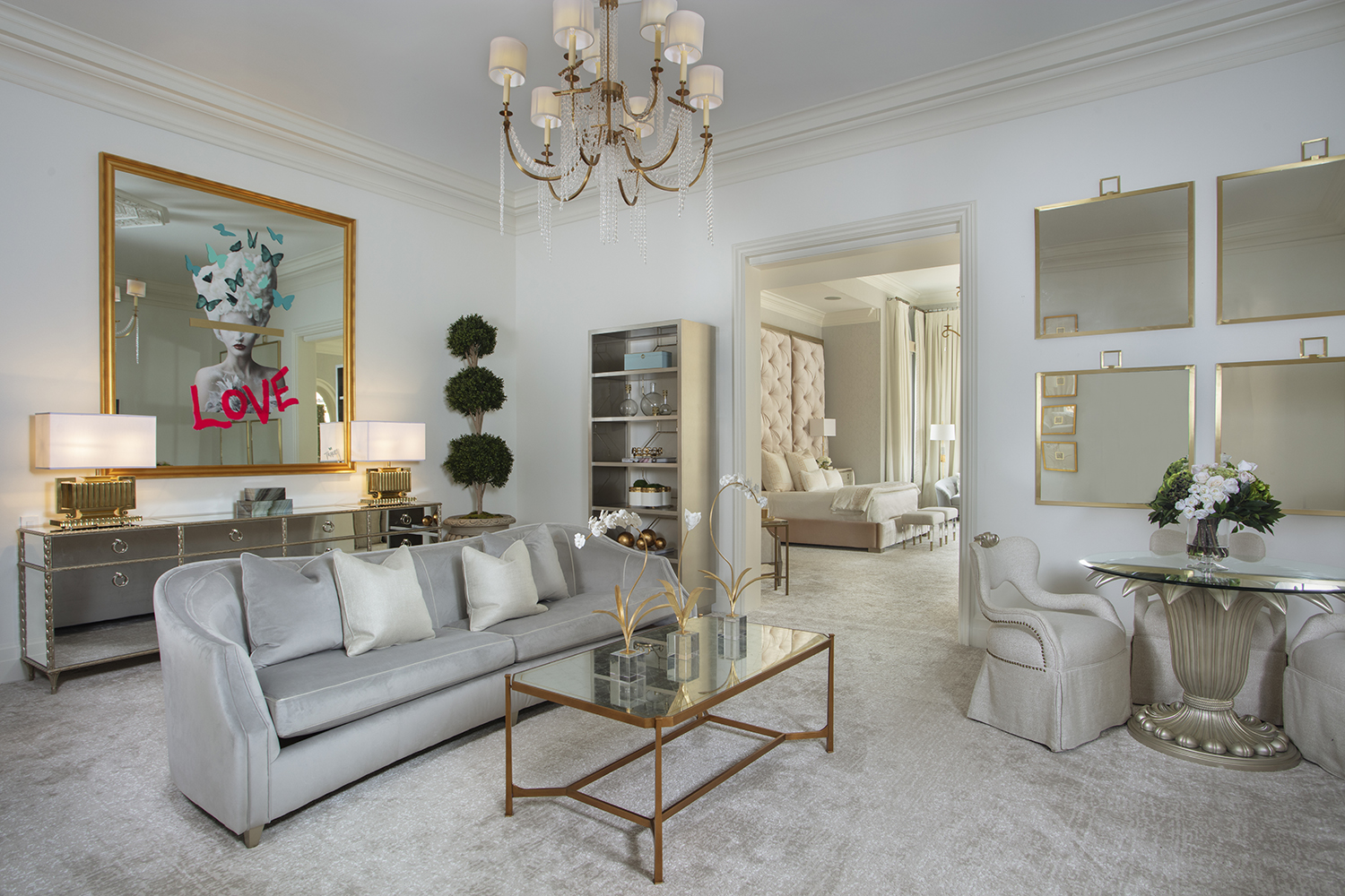From there, Breaux took to transforming the other area into a sitting area reminiscent of a hotel suite, complete with a table for last-minute work or a quiet breakfast, as well as plenty of mirrors, golds and velvets.