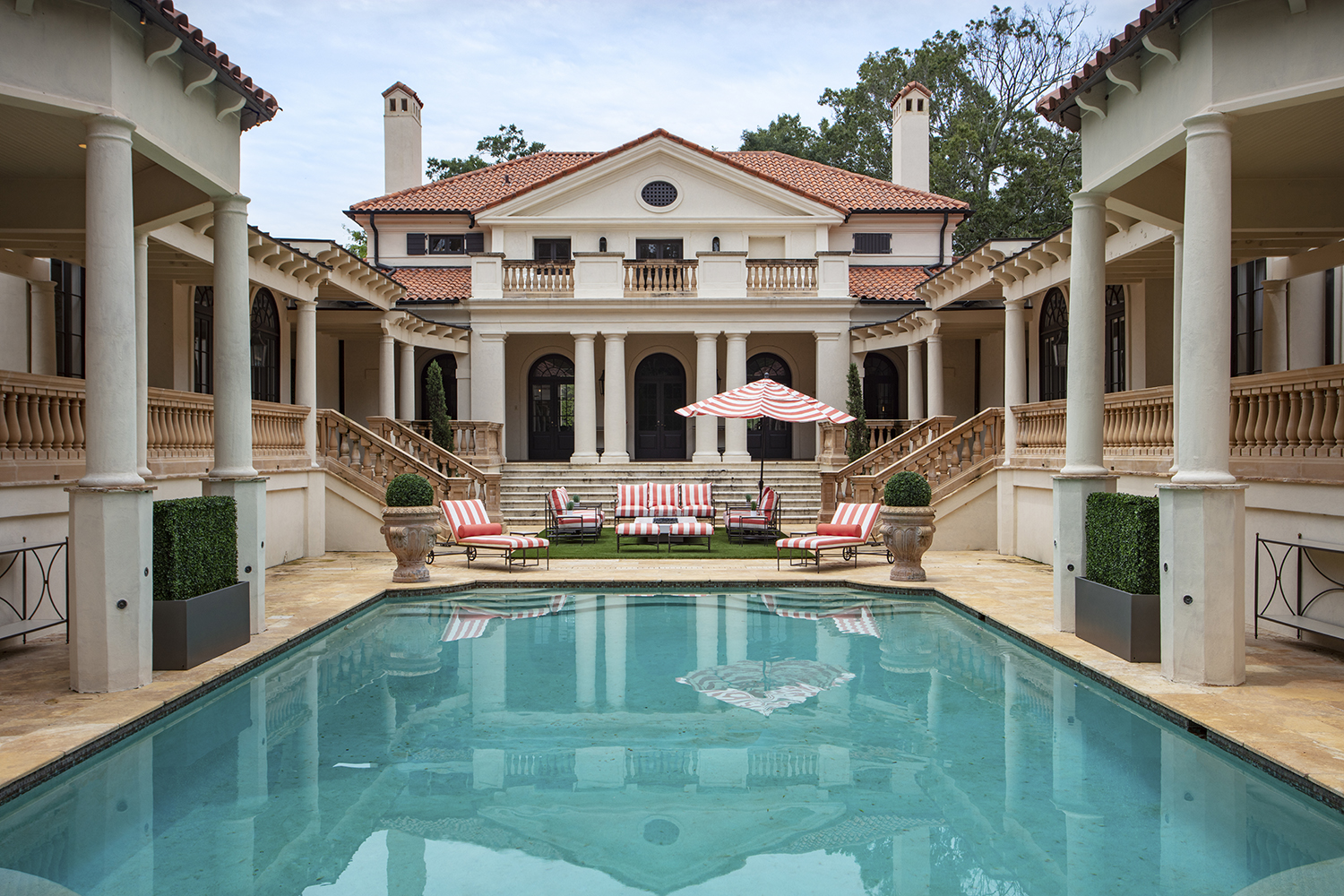 This pursuit of fun mixed with formal carries outside into the pool area, where salmon-colored cabana stripes cover the patio furniture. The pattern might seem like a bold choice, but for Breaux, taking such big risks makes sense outdoors where things like cushions have a much shorter life thanks in large part to south Louisiana’s nearly constant rain and humidity.