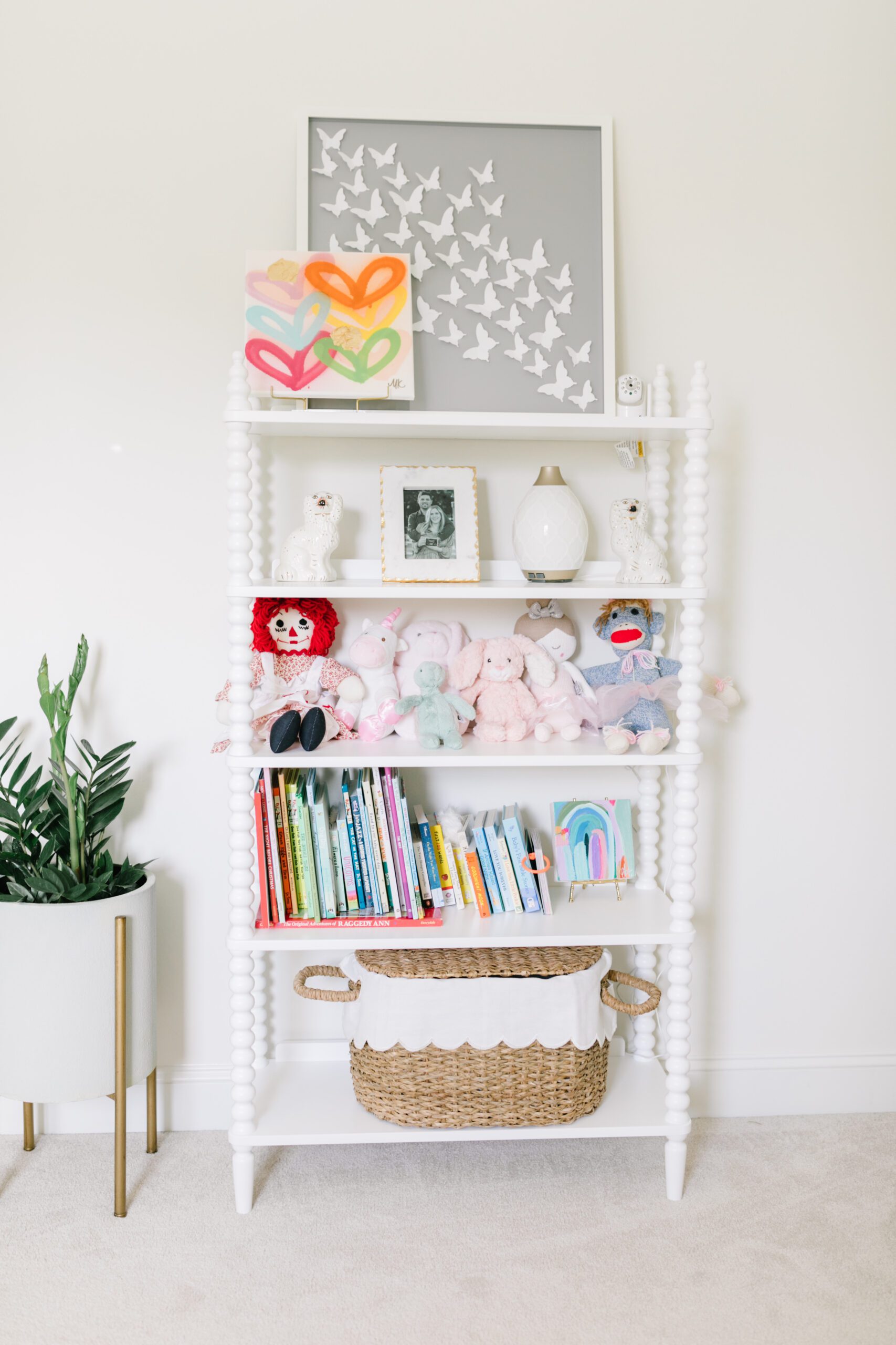 Everything doesn’t have to be brand new. Claire decorated the shelves in her daughter’s room with everything from a Helen Bolin angel that she was gifted in college to a music box passed down for generations. “I love when items have meaning and intentionality,” she explains.