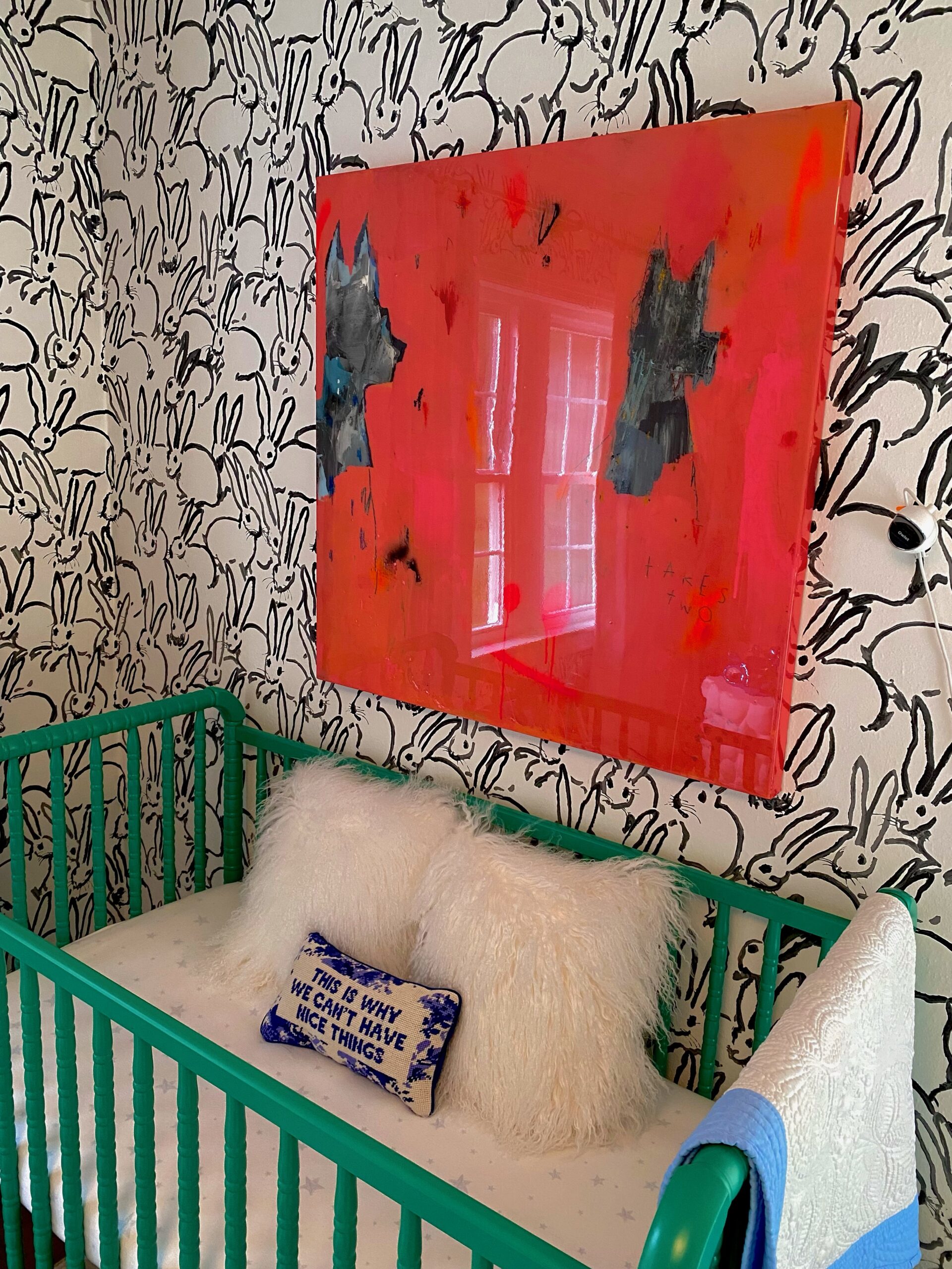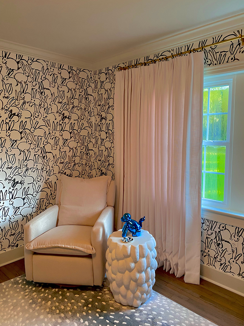 Don’t get us wrong, we love a good theme. But the key to creating a room with staying power is resisting the urge to plaster everything with a baby-related motif. For Sara, the Hunt Slonem bunny wallpaper was a sophisticated twist on a typical nursery theme. “Augie will now forever be my little bunny,” she says, “solely because of that wallpaper.”