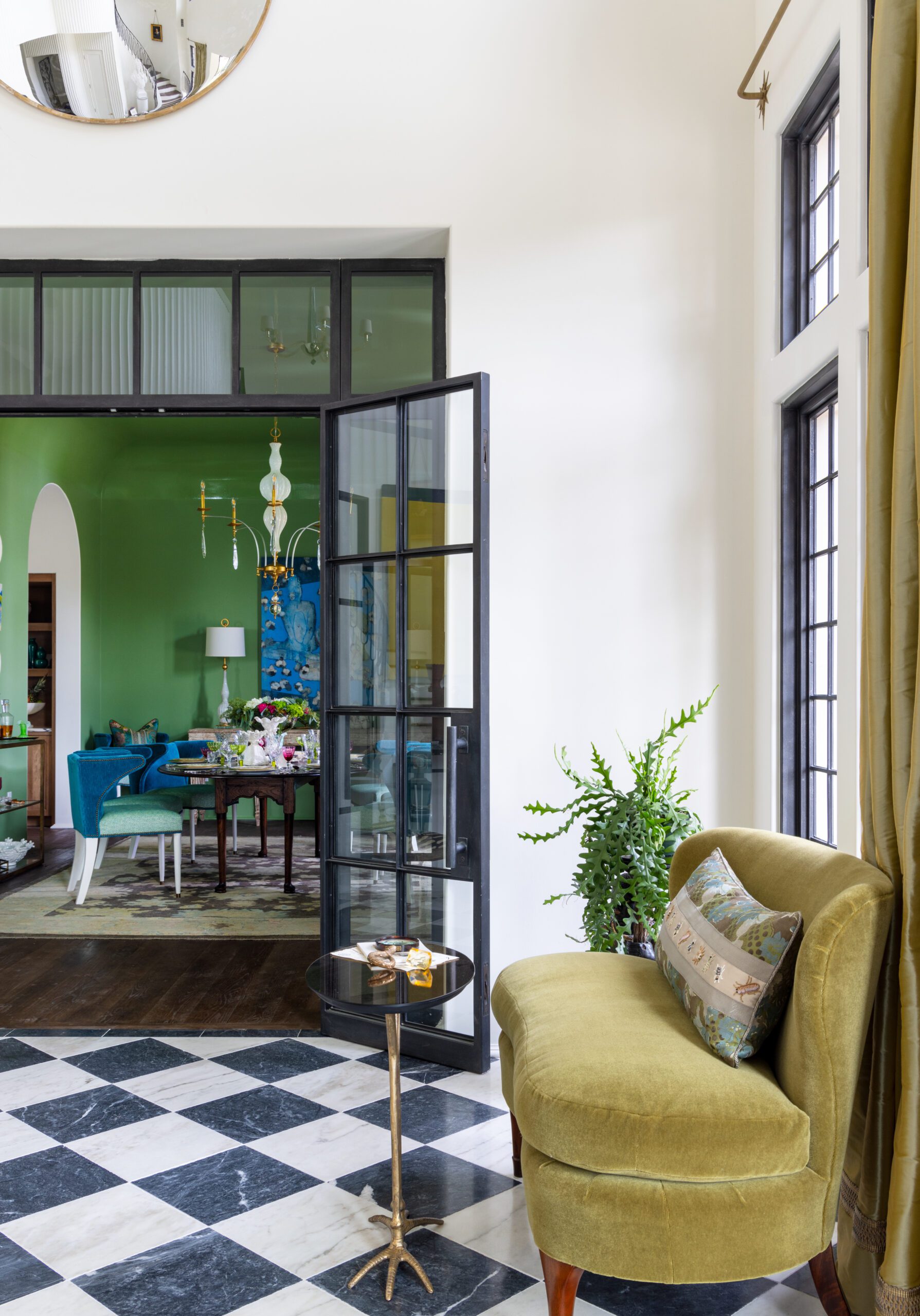 “I saw the space, metaphorically, as a portal to a new, post-pandemic era,” McDaniel explains. “As a society, I believe we are ready to pull back the curtains and move through a portal to a better place. A place certainly drawing from history and all its aesthetic delights, but also one of individuality where people want to explore and express their ideas for today and the future with more of an uninhibited flair.”
