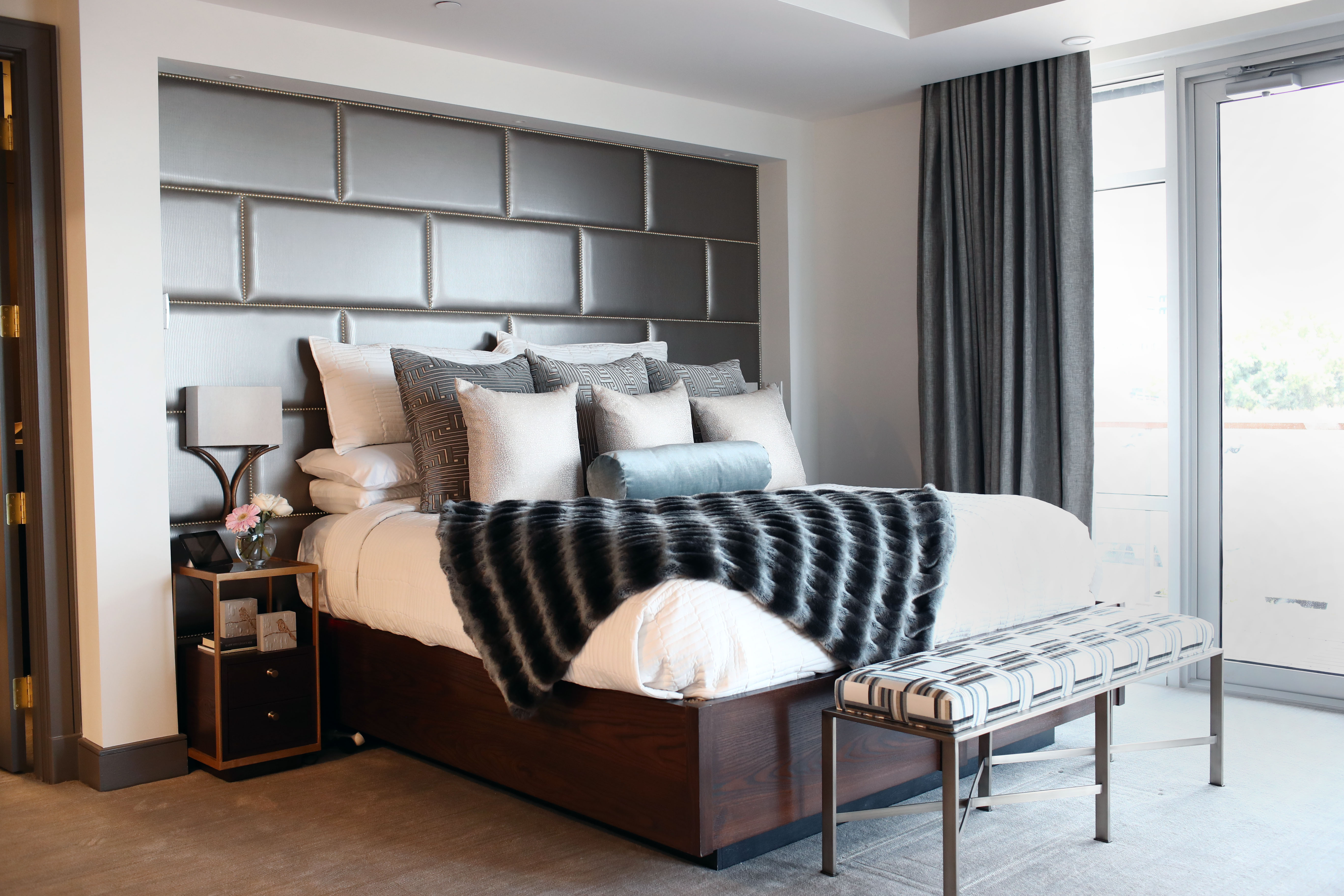 John turned to Becky Walker for the interior design of the townhouse, after she completed a contemporary commercial design for his H&E corporate headquarters. John was so pleased with the commercial results—and so appreciated the modern aesthetic—that he looked to Becky to create a contemporary vibe for his new urban home. That meant all new, carefully selected furniture and accessories for every inch of the four-story abode. The ground floor includes a guest bedroom and bath along with Marty’s office overlooking an urban garden. The second floor is home to the master suite and an additional spare bedroom. The third floor is the expansive living quarters including a kitchen, dining area, living room and intimate TV room. While the fourth floor offers an indoor/outdoor den and a full outdoor kitchen with ample seating. An open stair cavity, with floating stairs, connects all floors.