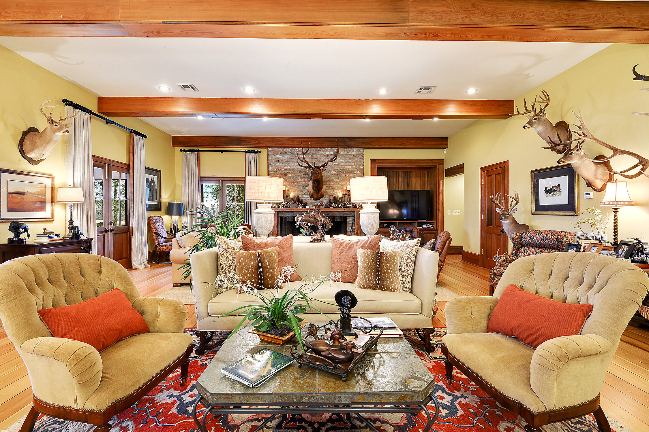 The Engquists purchased the Clinton house in 1996 and did a full renovation then. They even lived there full time until the commute to John’s office became too arduous due to Hurricane Katrina traffic. It’s home to their horses and animals, a stocked pond and ample room to fish and hunt. Their sons Ryan and John, along with their sons’ families, love to spend time up there. But in anticipation of designing a new house in Baton Rouge, the duo recognized that the Clinton house could use refurbishment and additions as well. Becky Walker stepped in to create a completely different—completely traditional—design at the ranch house.