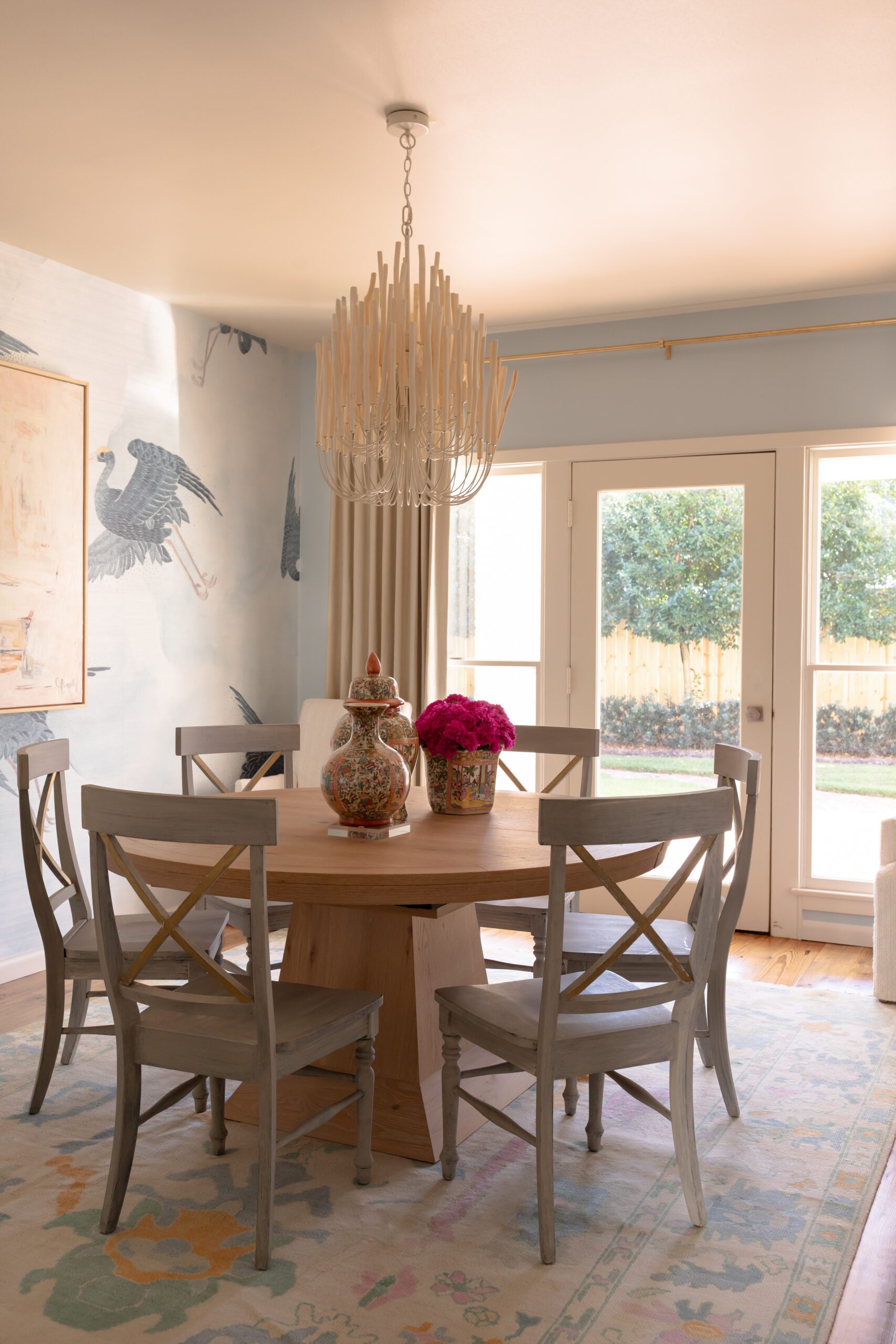 “As I kept suggesting things, [the client] kept saying yes,” Trent says. “It literally snowballed from ‘I want wallpaper in two spaces,’ to ‘let’s fully redesign the living room, the powder bath, the dining room, the keeping room and the primary bedroom.’ She was just very willing to keep it going.”