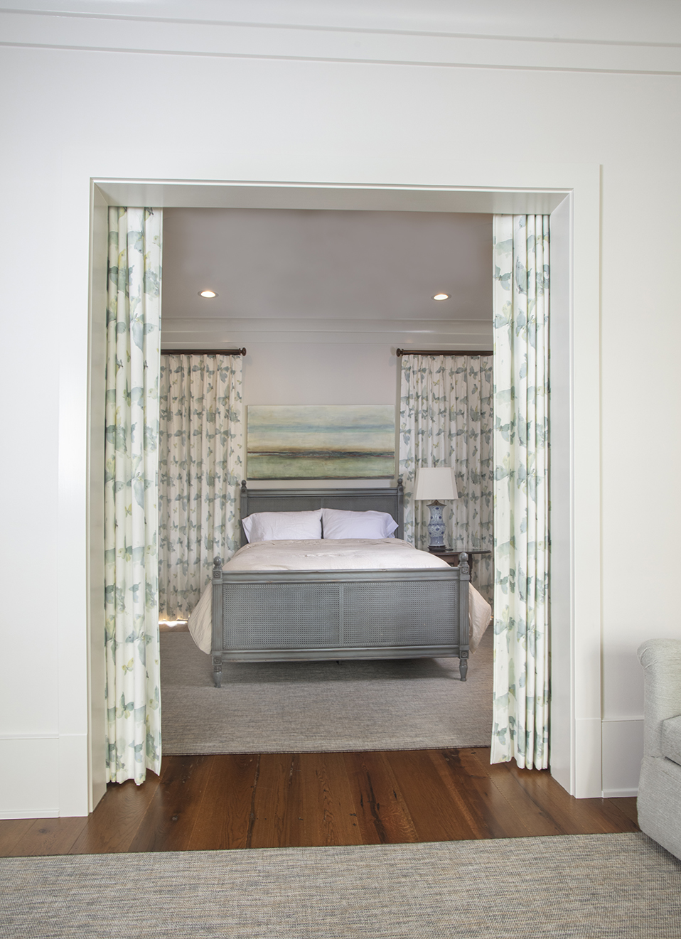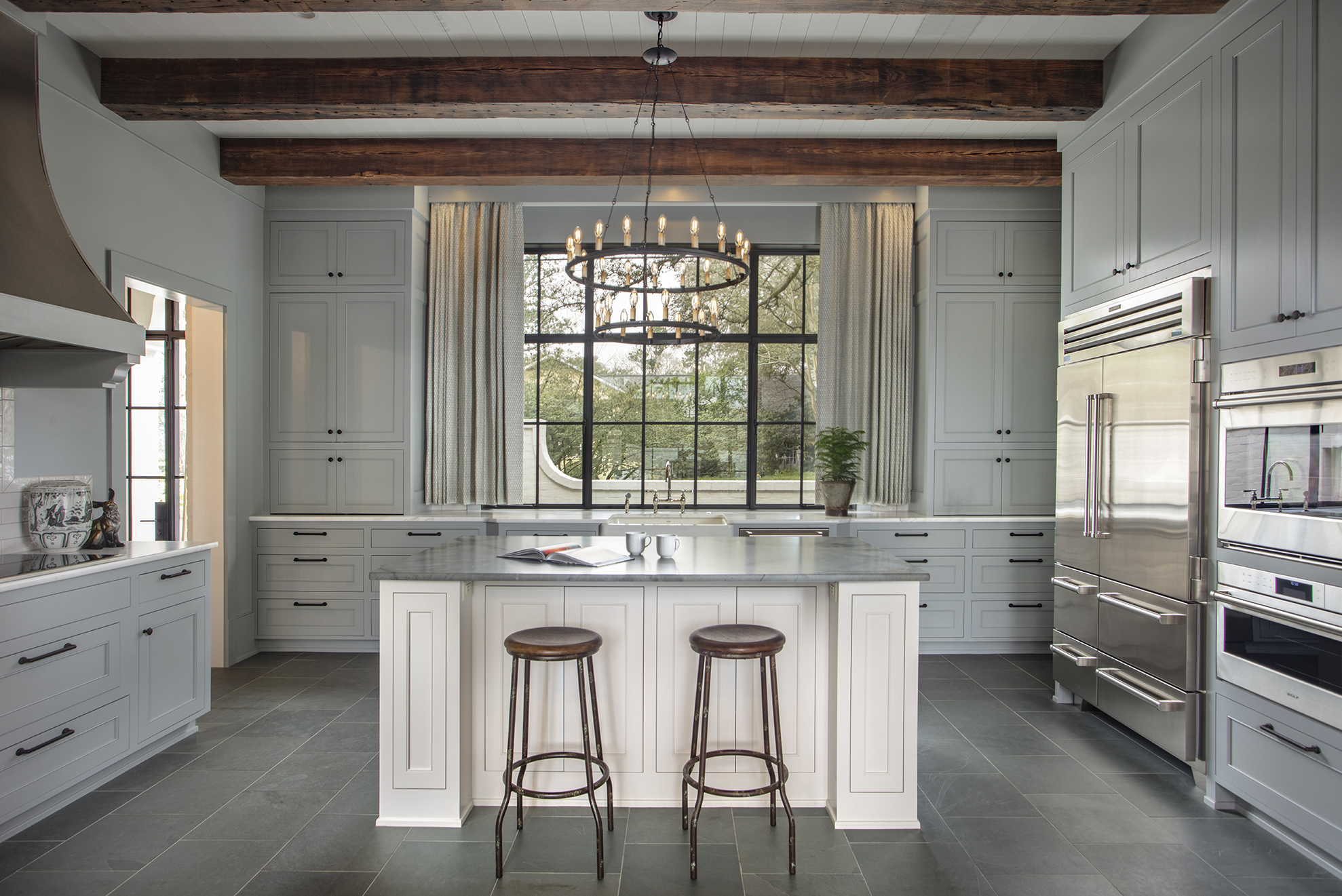Bertel Cook Jr. Construction took on the job of bringing the design to fruition. No small project, this home is striking because of its attention to detail. Coffered ceilings, paneling in the bedroom (designed to frame the master bed perfectly), vintage-style bronze hardware, and wood floorboards handpicked in Maurepas all come together to create a custom look that speaks to the style of the homeowners.