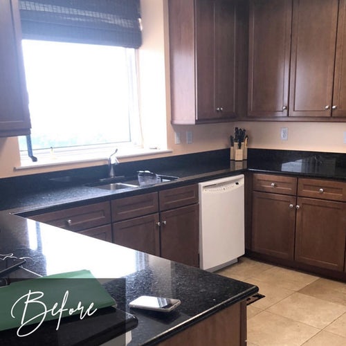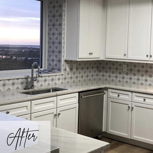 Designer Meghann Landry of McMillin Interiors is an advocate for repurposing the existing items in a space–especially in places like a kitchen where updates can quickly become pricy. Rather than tearing out cabinets, paint them and instead spend your money on finishing touches, like an eye-catching backsplash, that will make the entire space feel elevated.