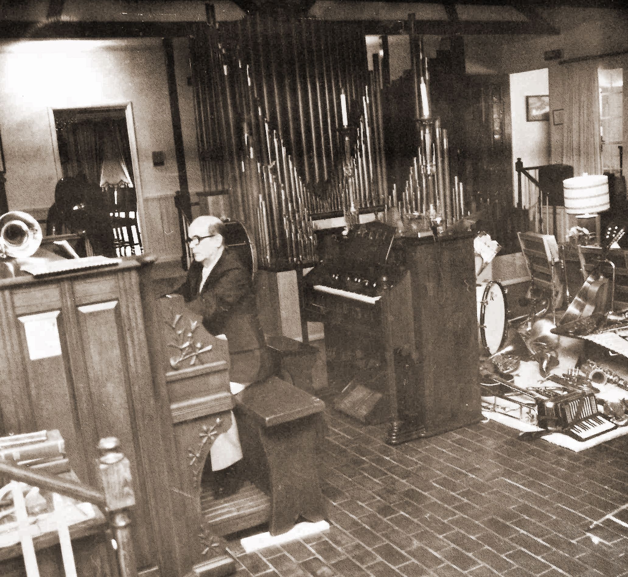 Described in the 1980 homes-focused issue of The Register as “a bachelor with varied interests,” he collected what he loved: antique cars, flying memorabilia, mechanical contrivances and a plethora of musical instruments in a nod to his musically inclined family. The great room of his home on Jefferson Highway was adorned with large propellors, a parking meter and an antique gramophone, along with about a dozen instruments, including a pipe organ he had built into the home, a drum set, an accordion and various horns. His vast instrument collection spilled over into the primary bedroom, where a cello, guitar and bass violin—all playable and often played—served as dècor.