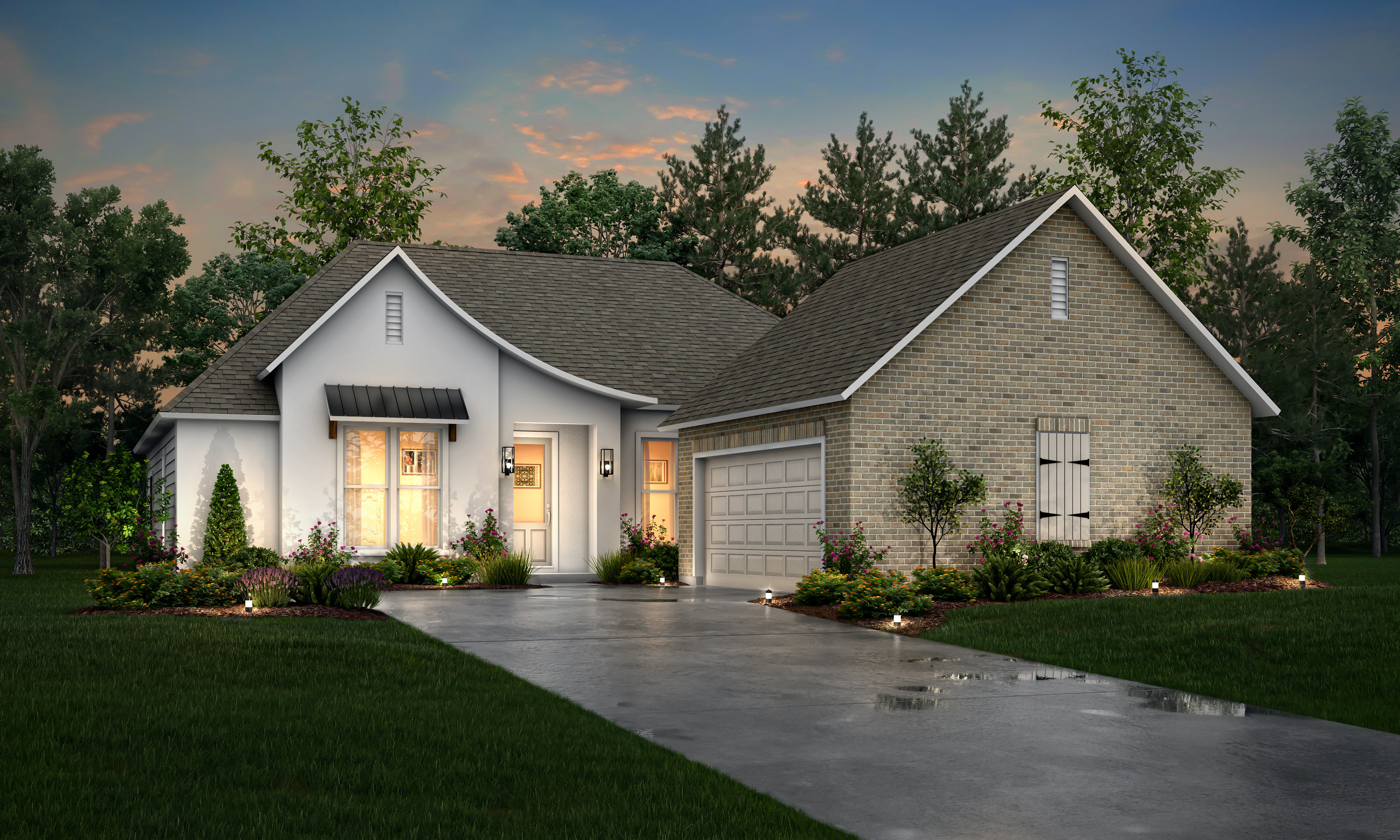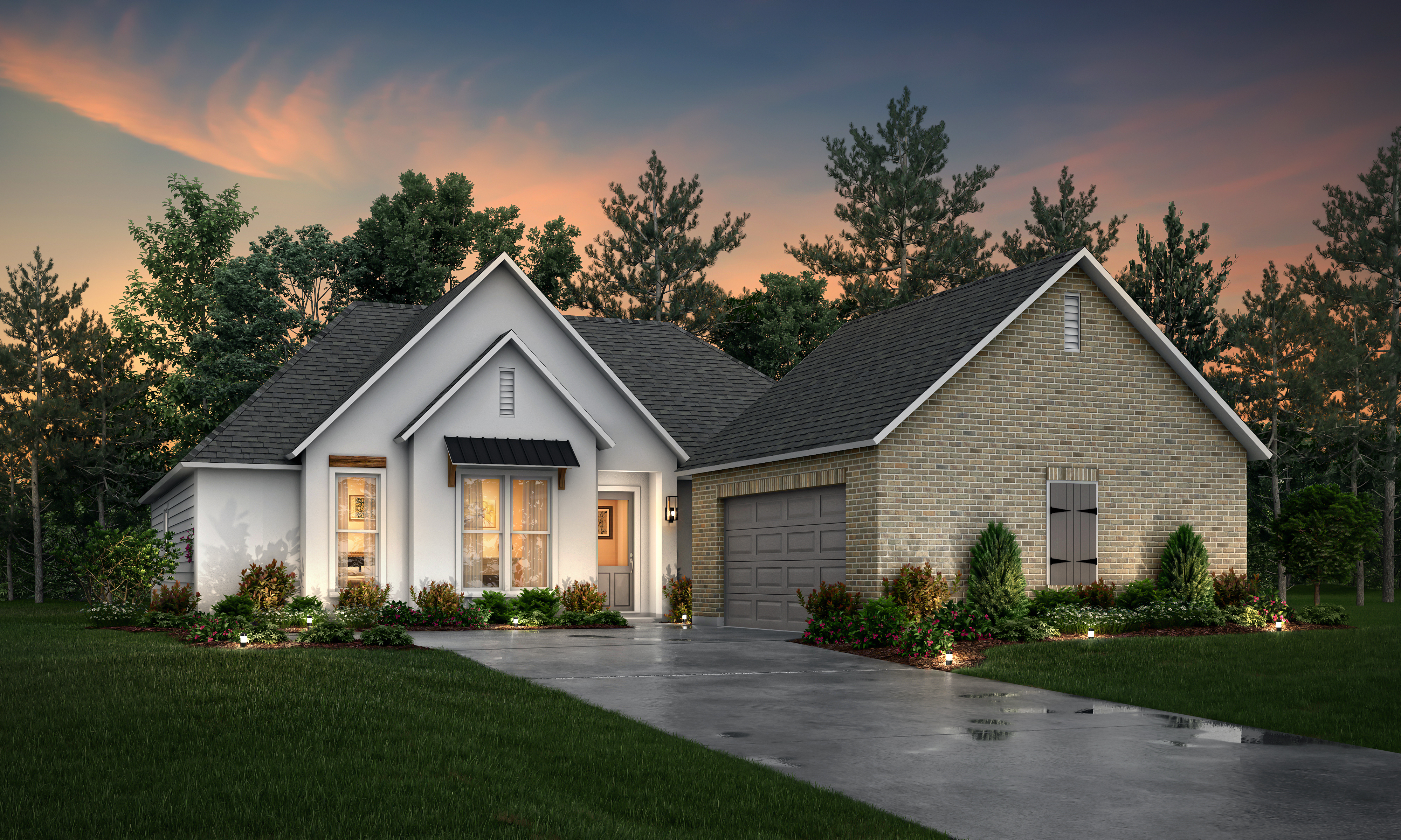 Parks at Water Oak is an exclusively built community from Alvarez Construction Company in Ascension Parish on Germany Rd. Modern contemporary details meet traditional architecture with sleek electric lanterns. The walkable neighborhood has sidewalks, a pond, multiple green spaces, and curb and gutter.